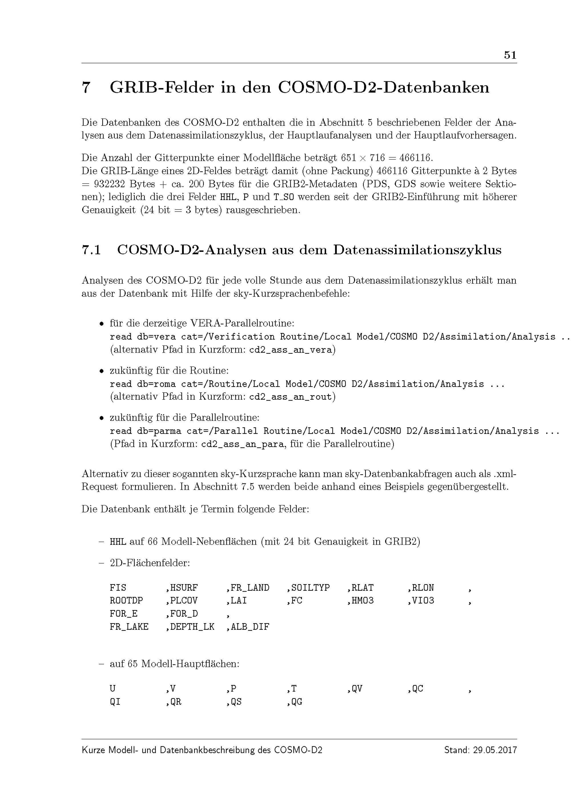 Kurze Beschreibung des präoperationellen Kürzestfristvorhersagemodells COSMO-D2 und seiner Datenbanken auf dem Datenserver des DWD / M. Baldauf, B. Ritter, C. Schraff