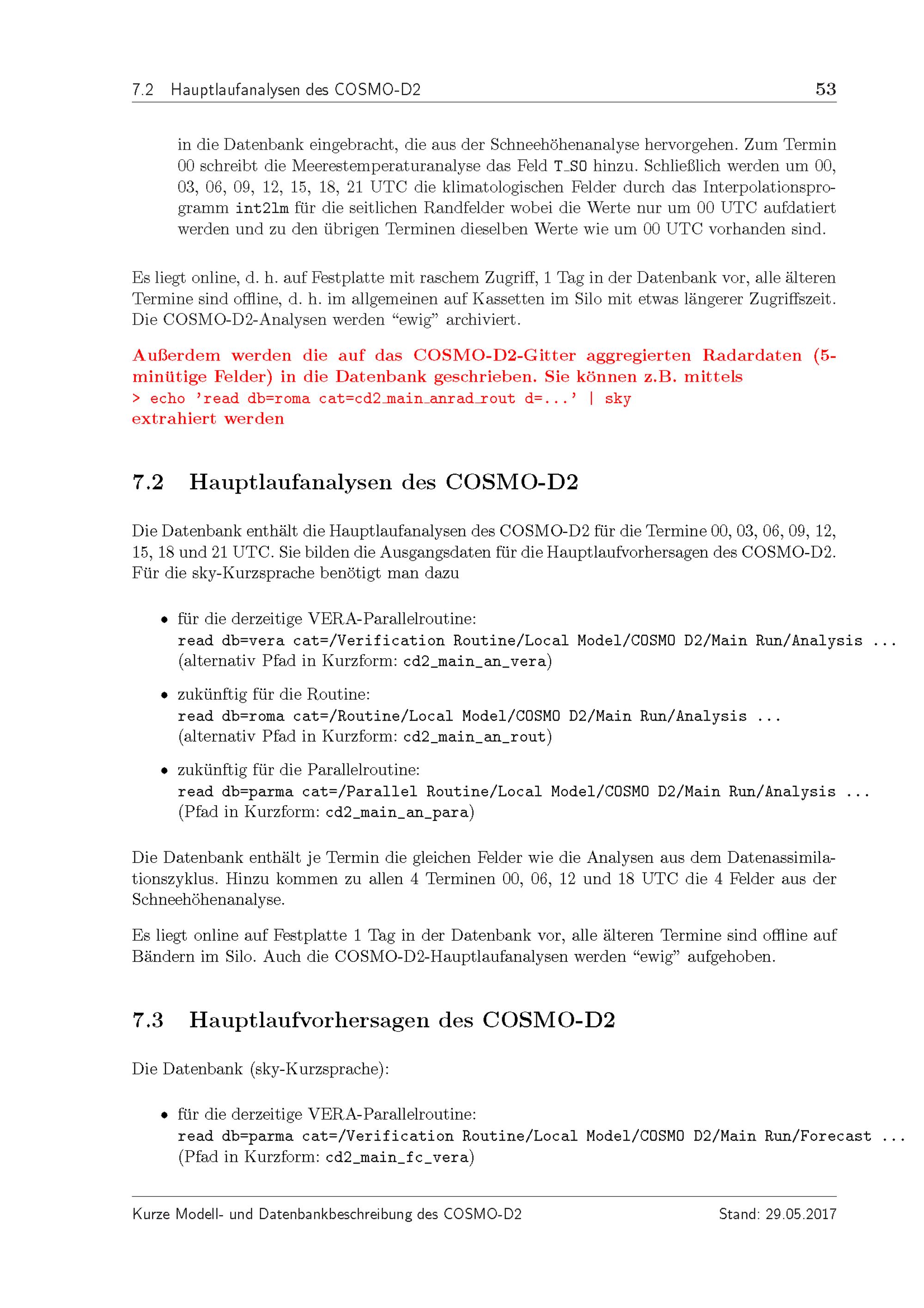Kurze Beschreibung des präoperationellen Kürzestfristvorhersagemodells COSMO-D2 und seiner Datenbanken auf dem Datenserver des DWD / M. Baldauf, B. Ritter, C. Schraff