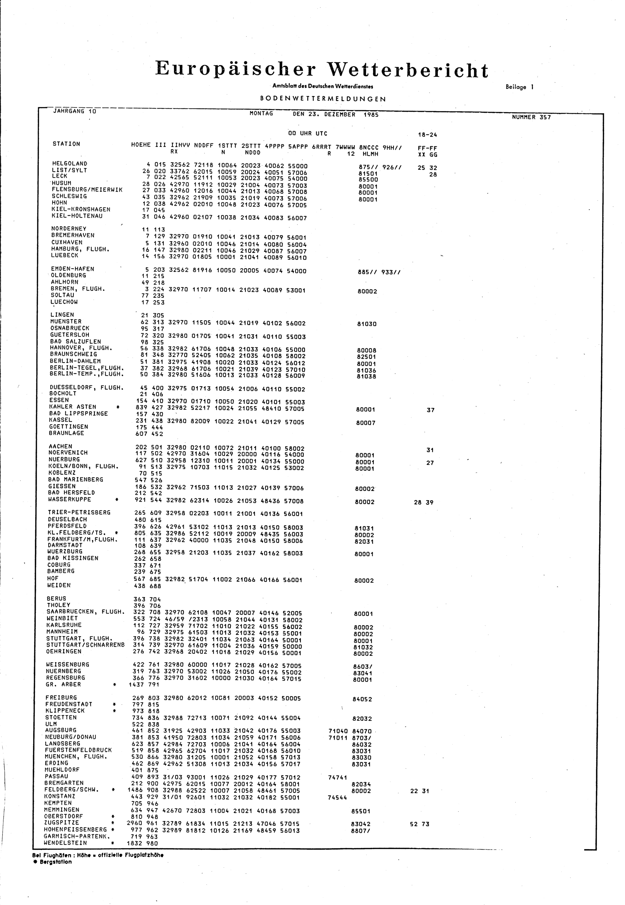 Europäischer Wetterbericht. Beilage 1, Bodenwettermeldungen. 1976-1994