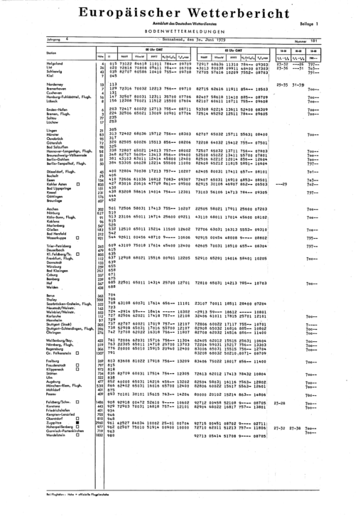 Europäischer Wetterbericht. Beilage 1, Bodenwettermeldungen. 1976-1994