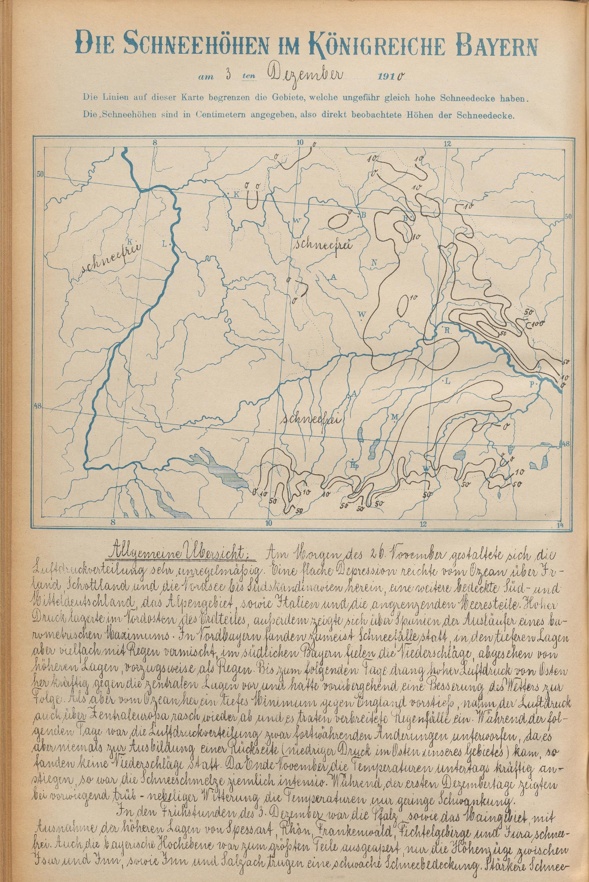 Die Schneehöhen im Königreiche Bayern