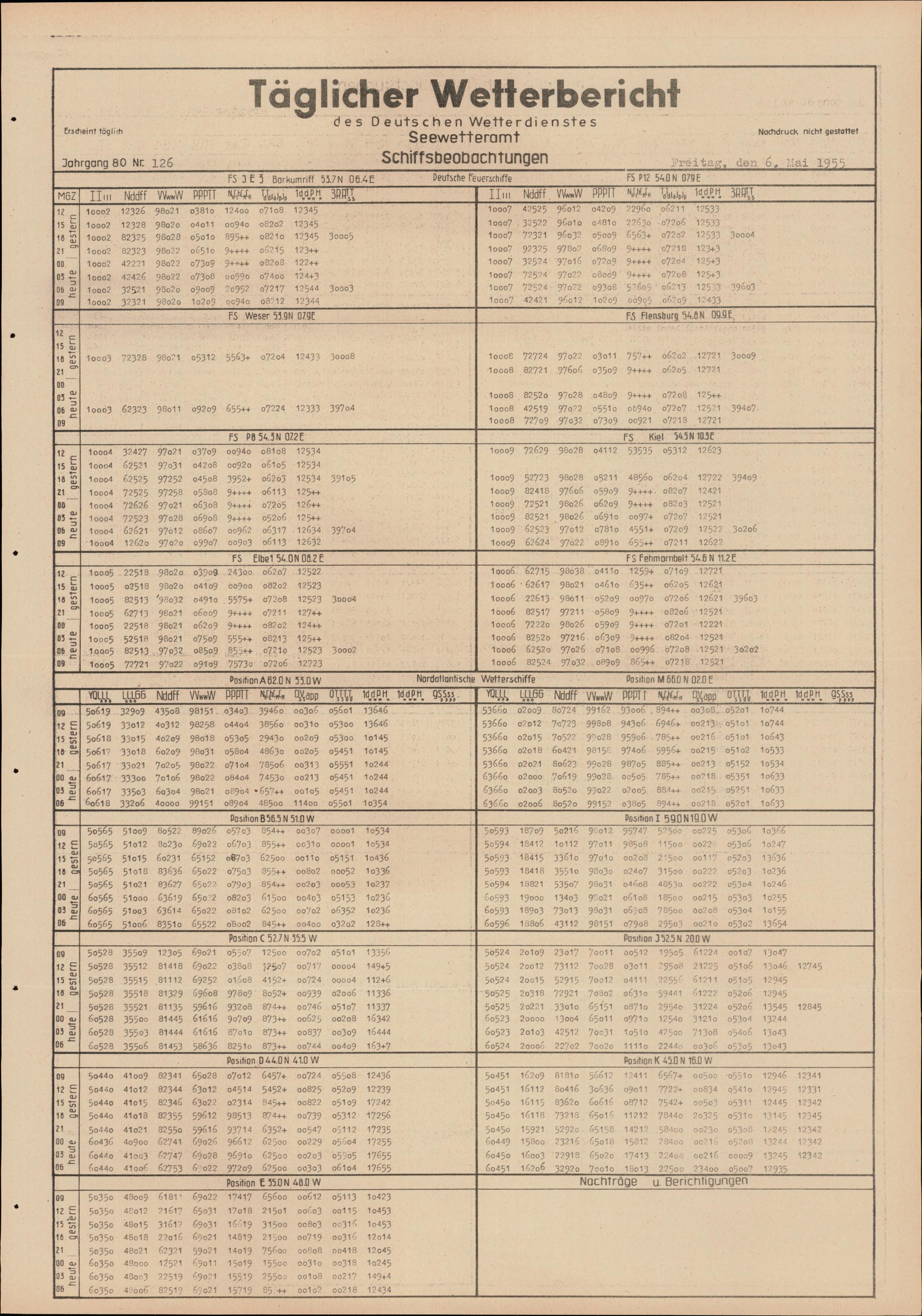 Täglicher Wetterbericht des Deutschen Wetterdienstes, Seewetteramt