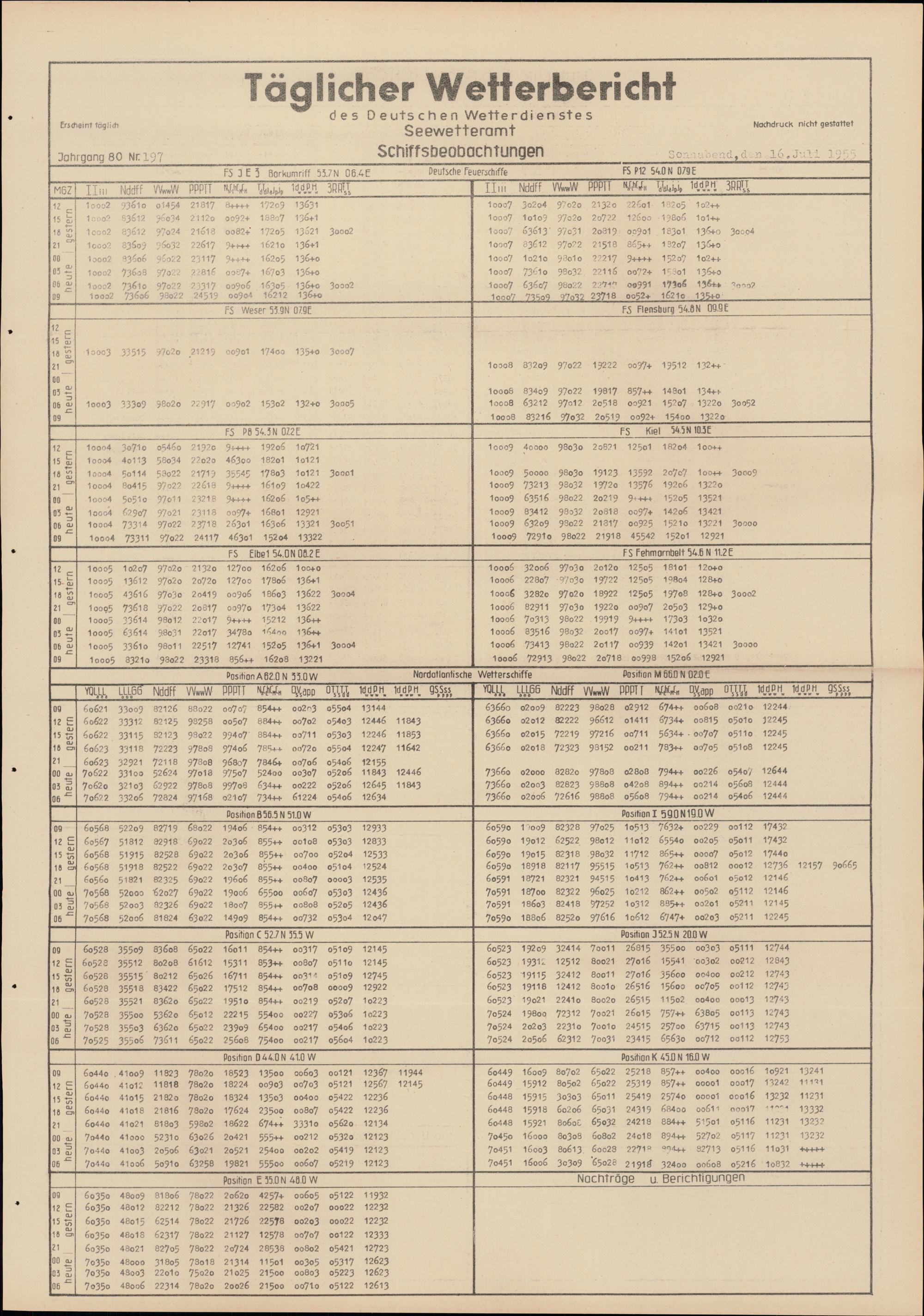 Täglicher Wetterbericht des Deutschen Wetterdienstes, Seewetteramt