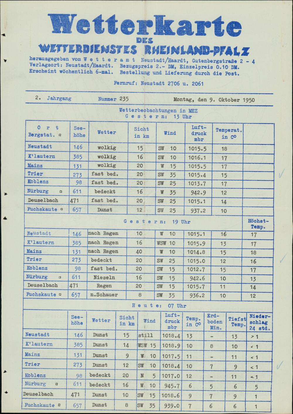 Wetterkarte des Wetterdienstes Rheinland-Pfalz