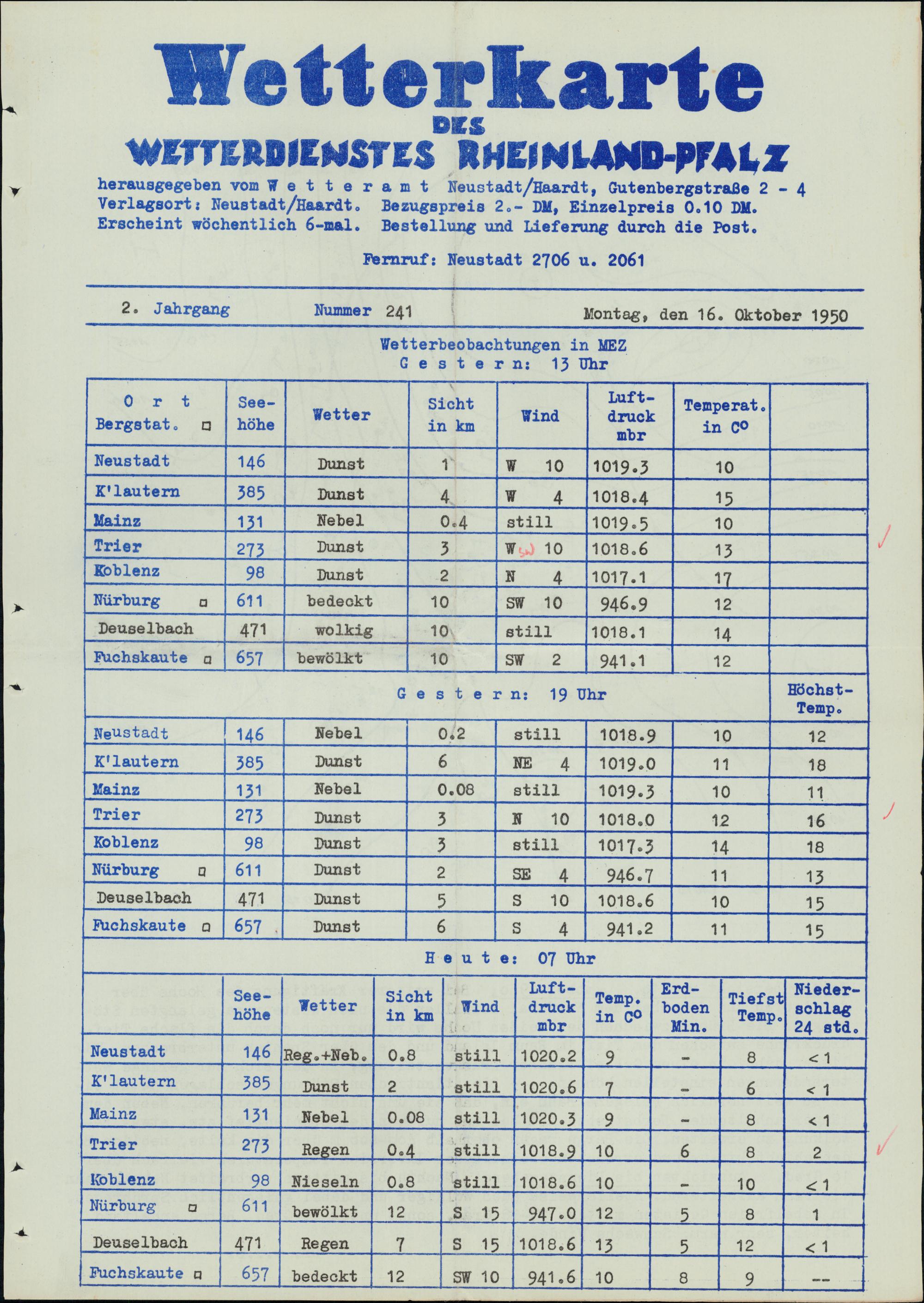 Wetterkarte des Wetterdienstes Rheinland-Pfalz