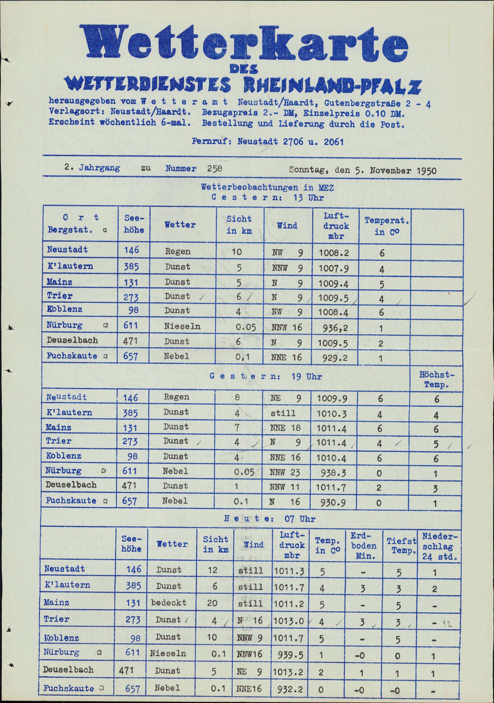 Wetterkarte des Wetterdienstes Rheinland-Pfalz