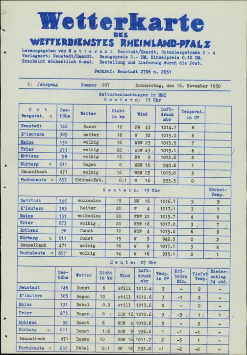 Wetterkarte des Wetterdienstes Rheinland-Pfalz