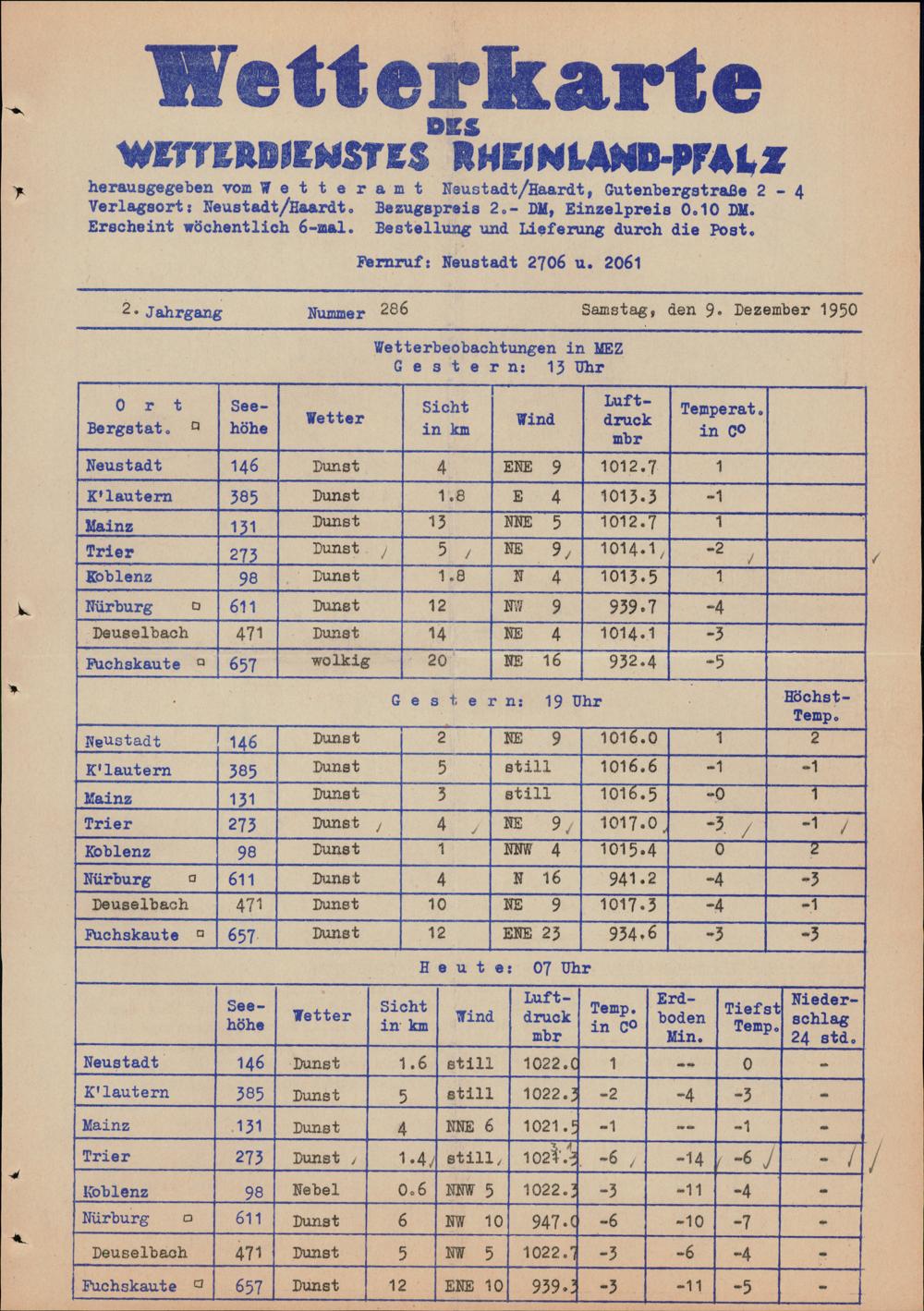 Wetterkarte des Wetterdienstes Rheinland-Pfalz