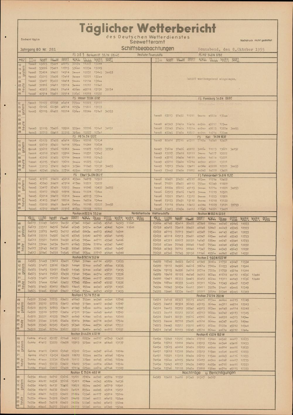 Täglicher Wetterbericht des Deutschen Wetterdienstes, Seewetteramt