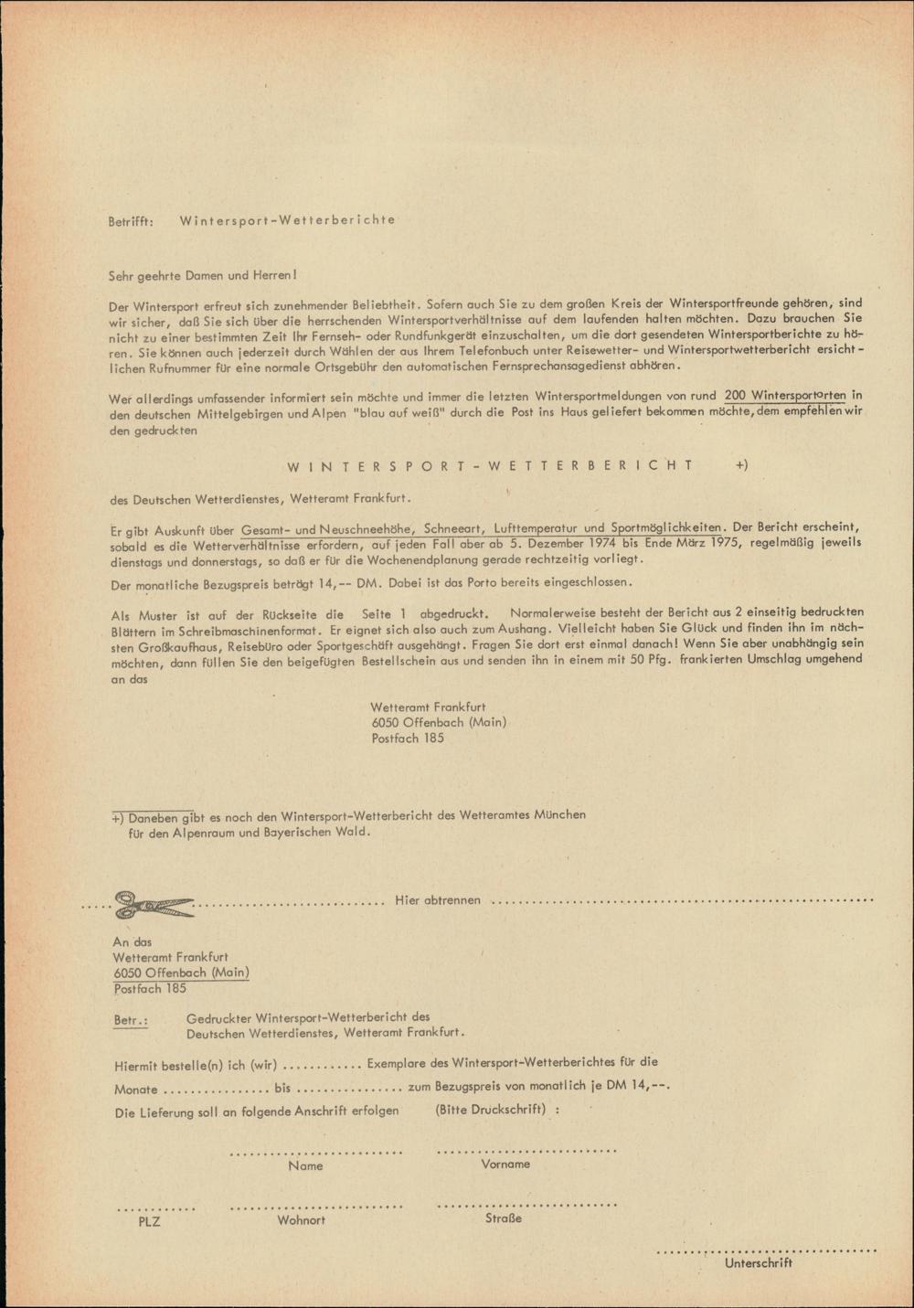 Ausgabeort Wetteramt Frankfurt/Main