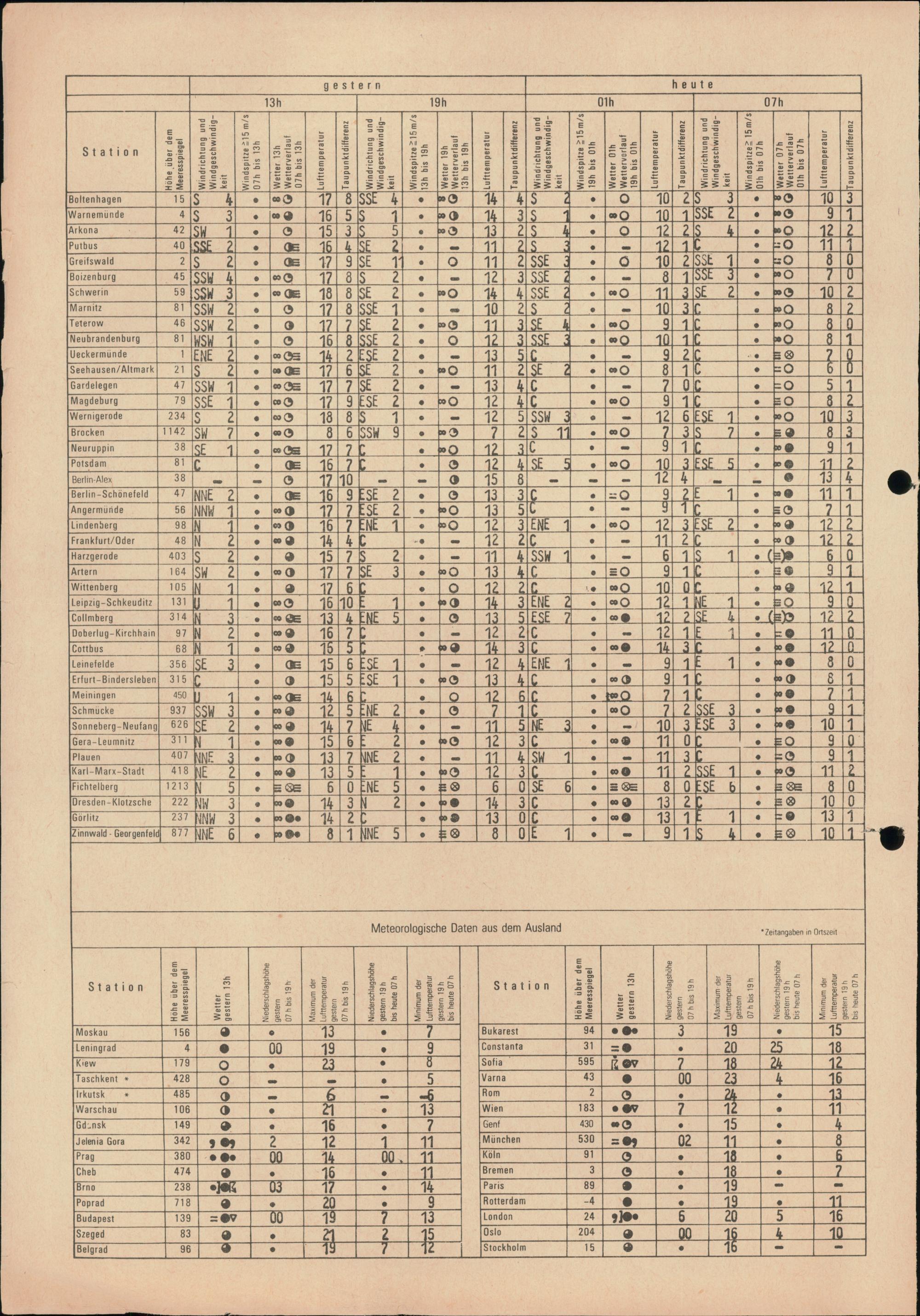 Täglicher Wetterbericht des Meteorologischen Dienstes der Deutschen Demokratischen...