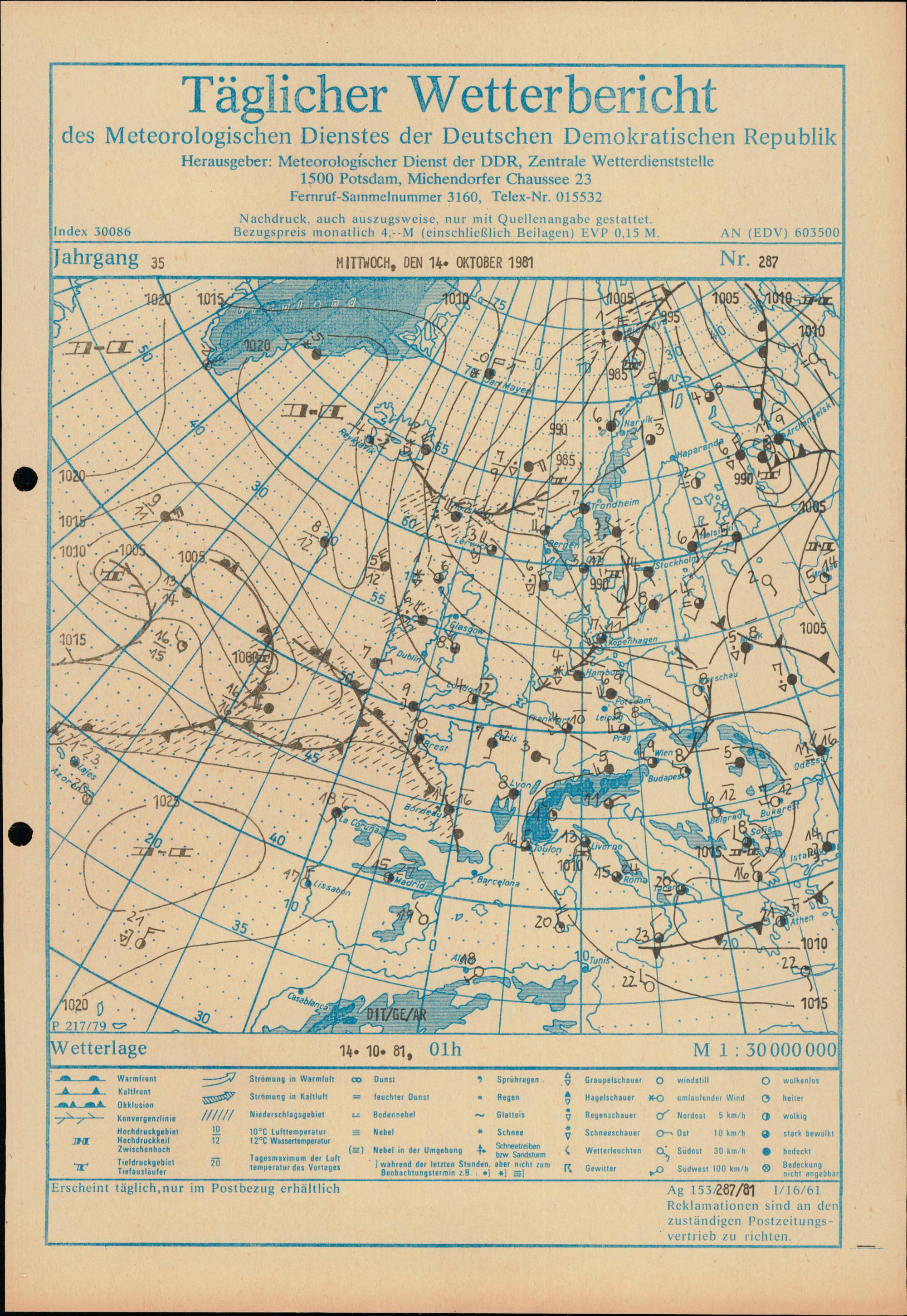 Täglicher Wetterbericht des Meteorologischen Dienstes der Deutschen Demokratischen...