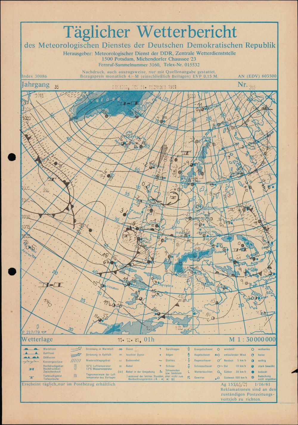 Täglicher Wetterbericht des Meteorologischen Dienstes der Deutschen Demokratischen...