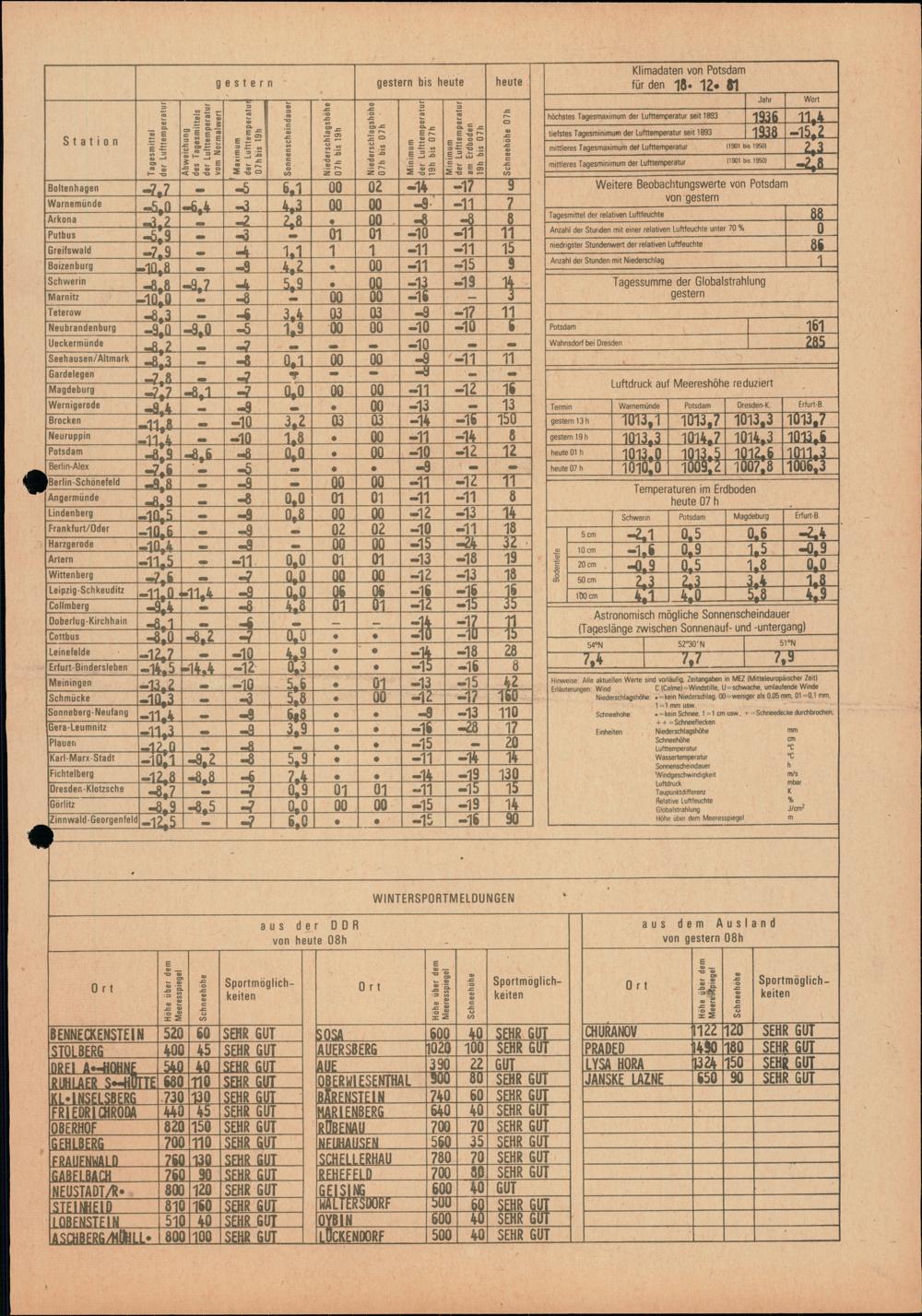Täglicher Wetterbericht des Meteorologischen Dienstes der Deutschen Demokratischen...