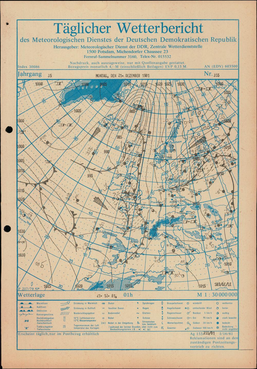 Täglicher Wetterbericht des Meteorologischen Dienstes der Deutschen Demokratischen...