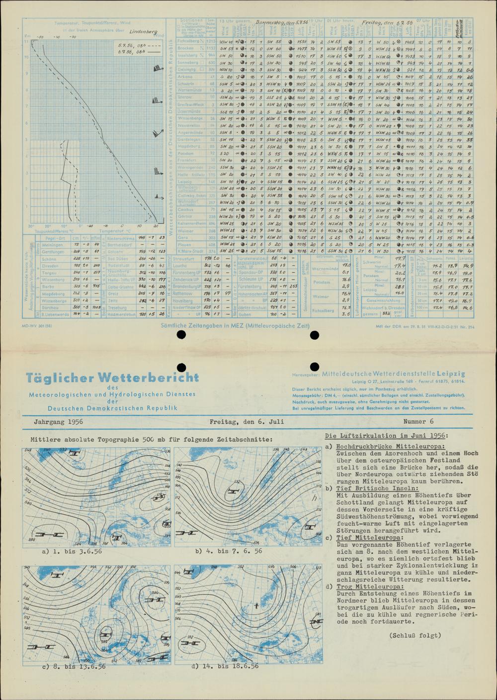 Täglicher Wetterbericht des Meteorologischen und Hydrologischen Dienstes der Deutschen...