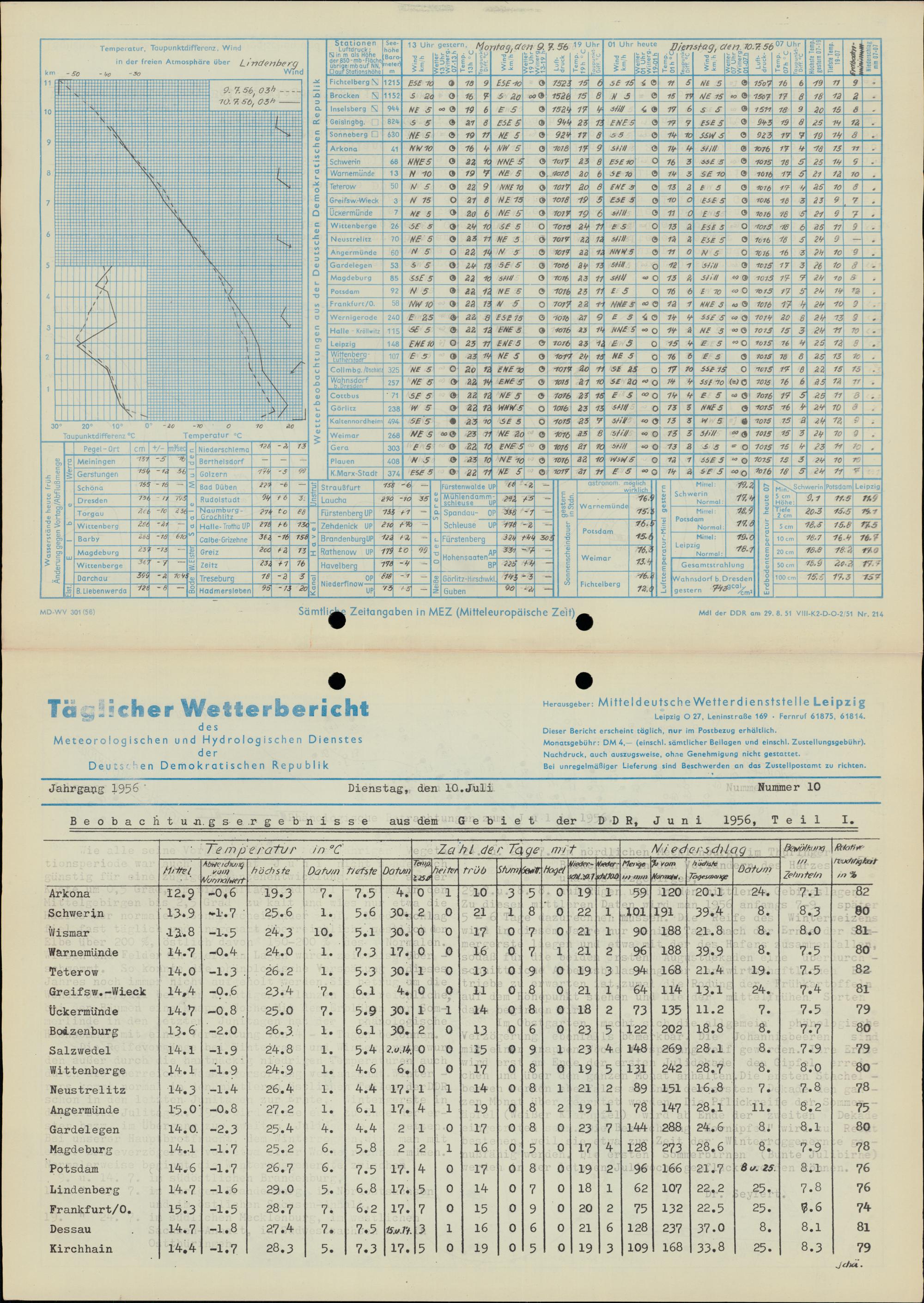 Täglicher Wetterbericht des Meteorologischen und Hydrologischen Dienstes der Deutschen...
