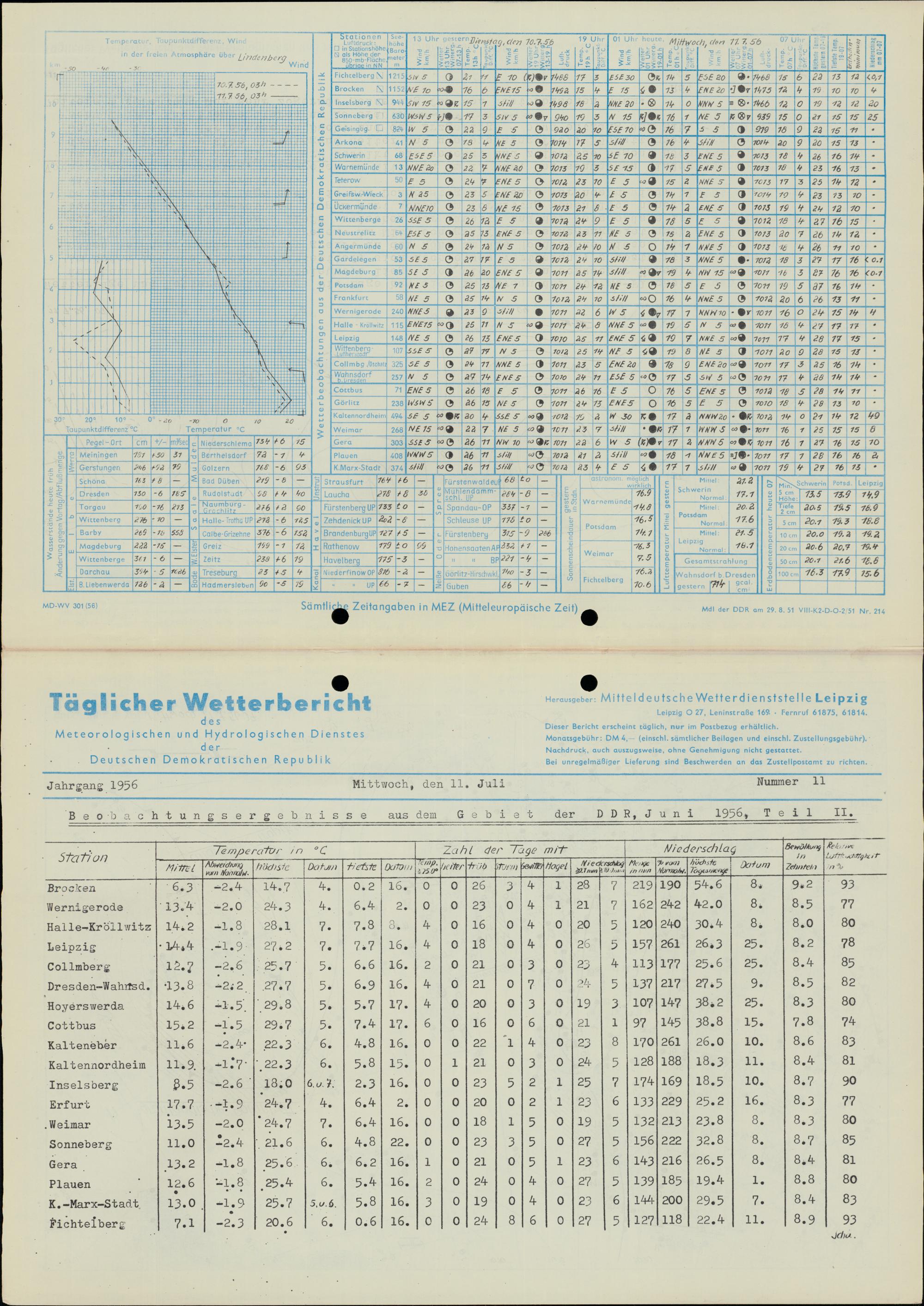 Täglicher Wetterbericht des Meteorologischen und Hydrologischen Dienstes der Deutschen...
