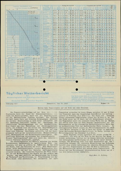 Täglicher Wetterbericht des Meteorologischen und Hydrologischen Dienstes der Deutschen...