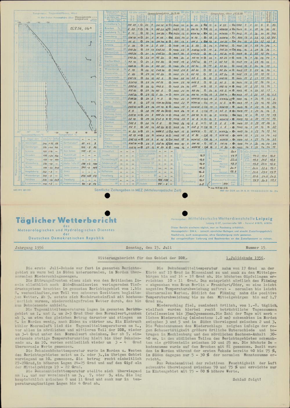 Täglicher Wetterbericht des Meteorologischen und Hydrologischen Dienstes der Deutschen...