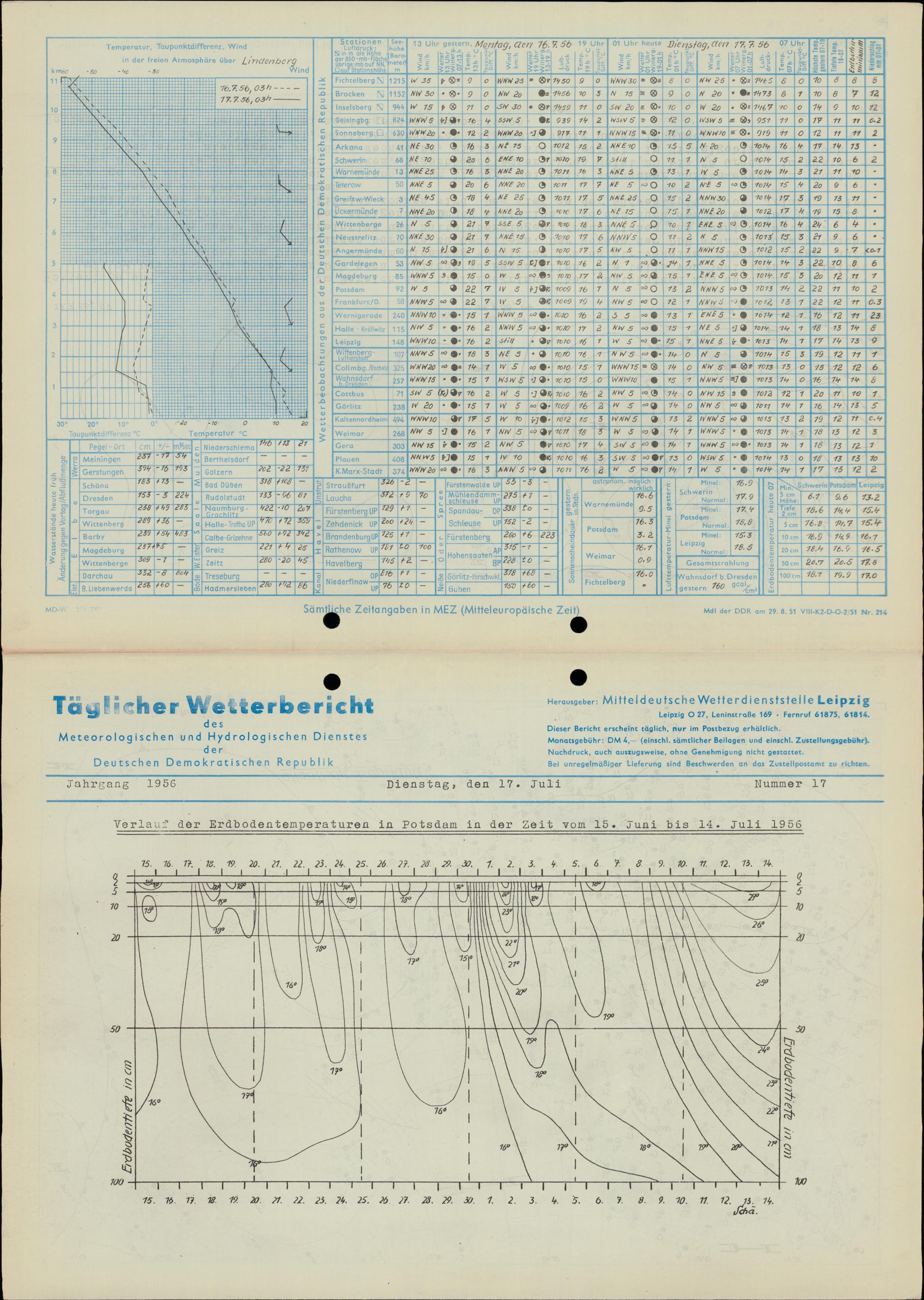 Täglicher Wetterbericht des Meteorologischen und Hydrologischen Dienstes der Deutschen...