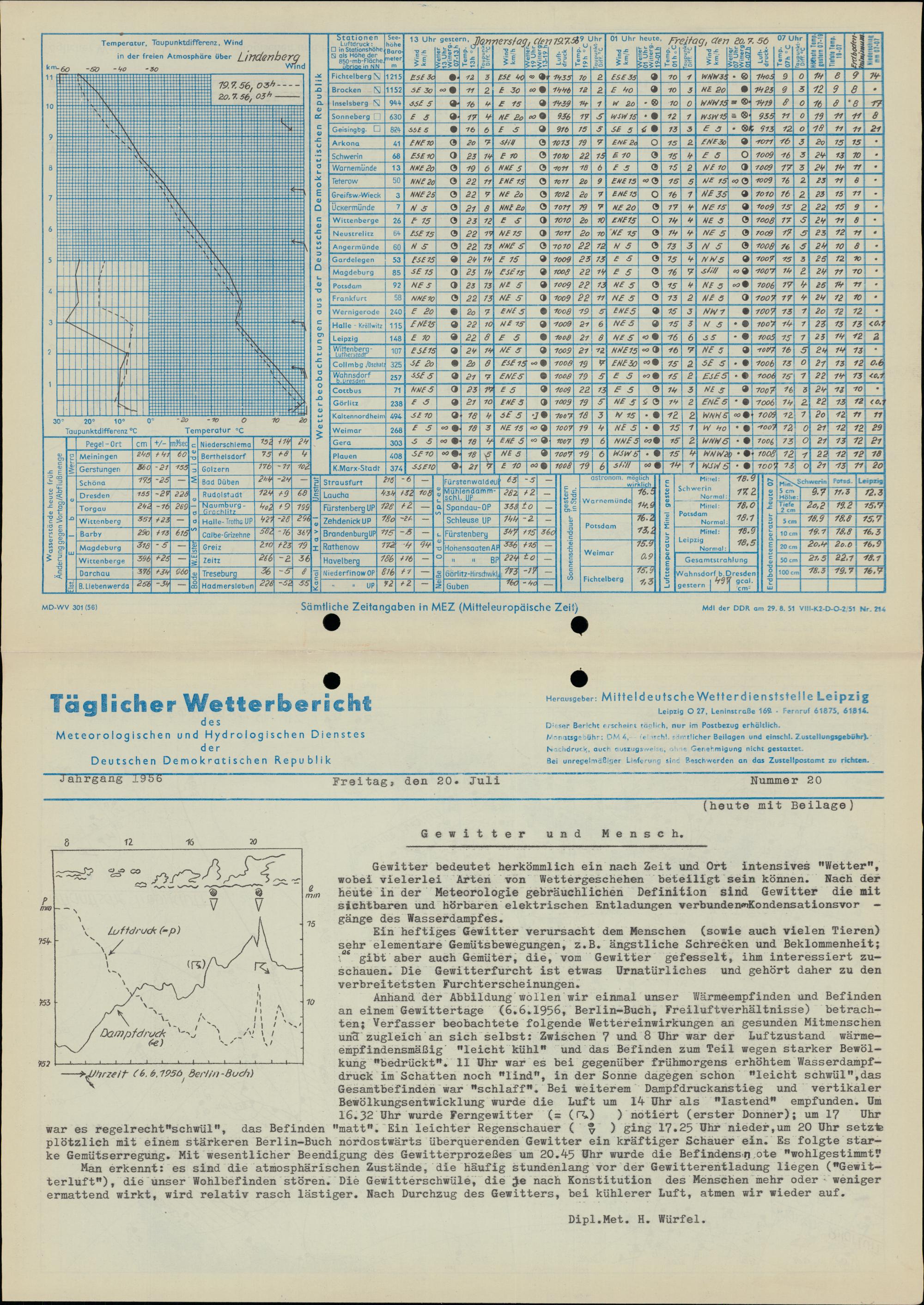 Täglicher Wetterbericht des Meteorologischen und Hydrologischen Dienstes der Deutschen...