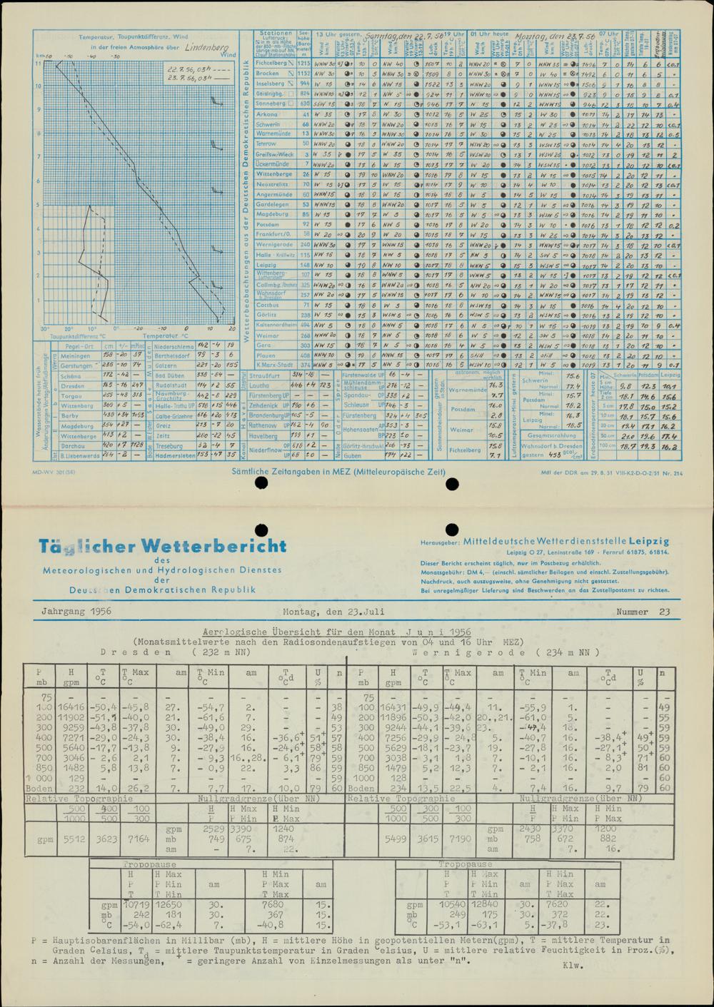 Täglicher Wetterbericht des Meteorologischen und Hydrologischen Dienstes der Deutschen...