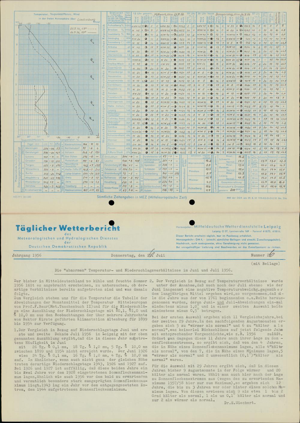 Täglicher Wetterbericht des Meteorologischen und Hydrologischen Dienstes der Deutschen...