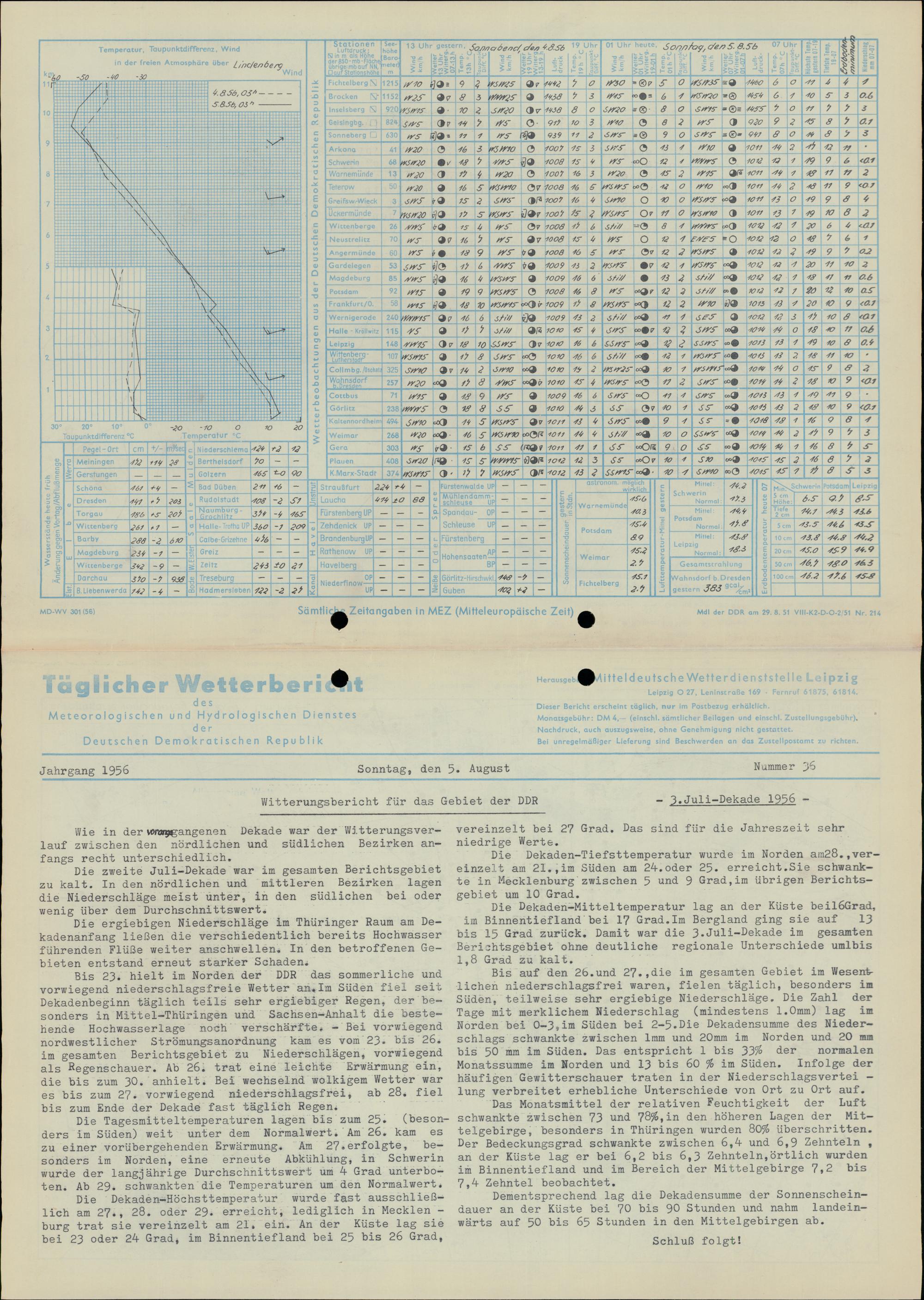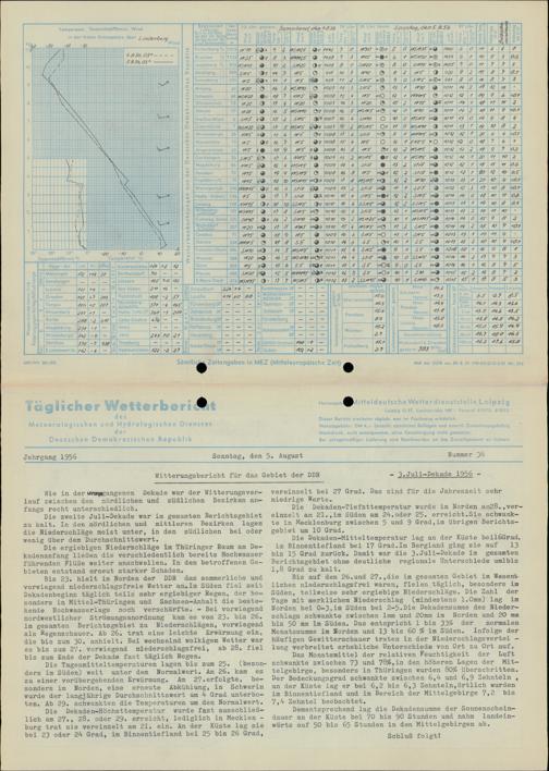 Täglicher Wetterbericht des Meteorologischen und Hydrologischen Dienstes der Deutschen...