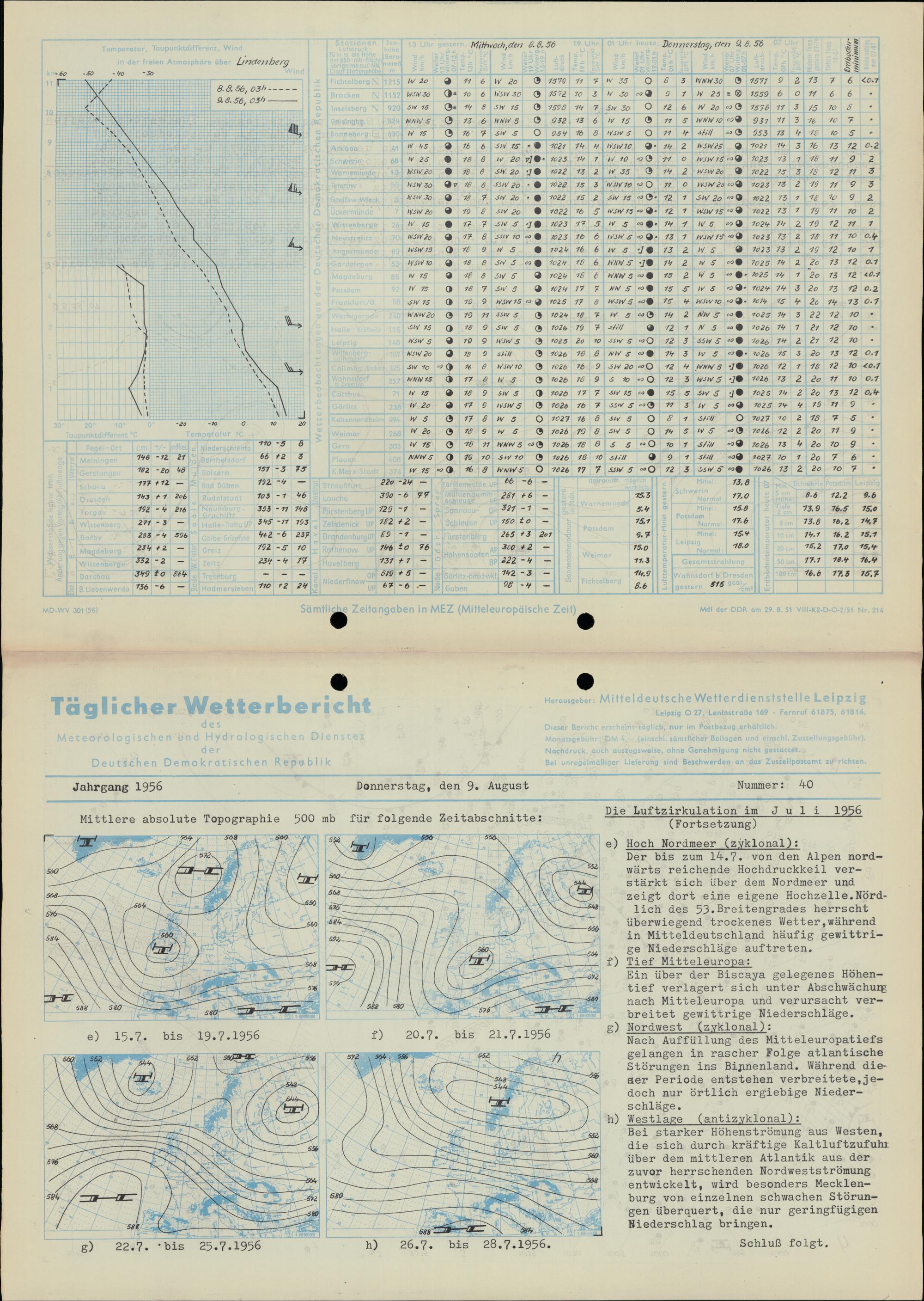 Täglicher Wetterbericht des Meteorologischen und Hydrologischen Dienstes der Deutschen...