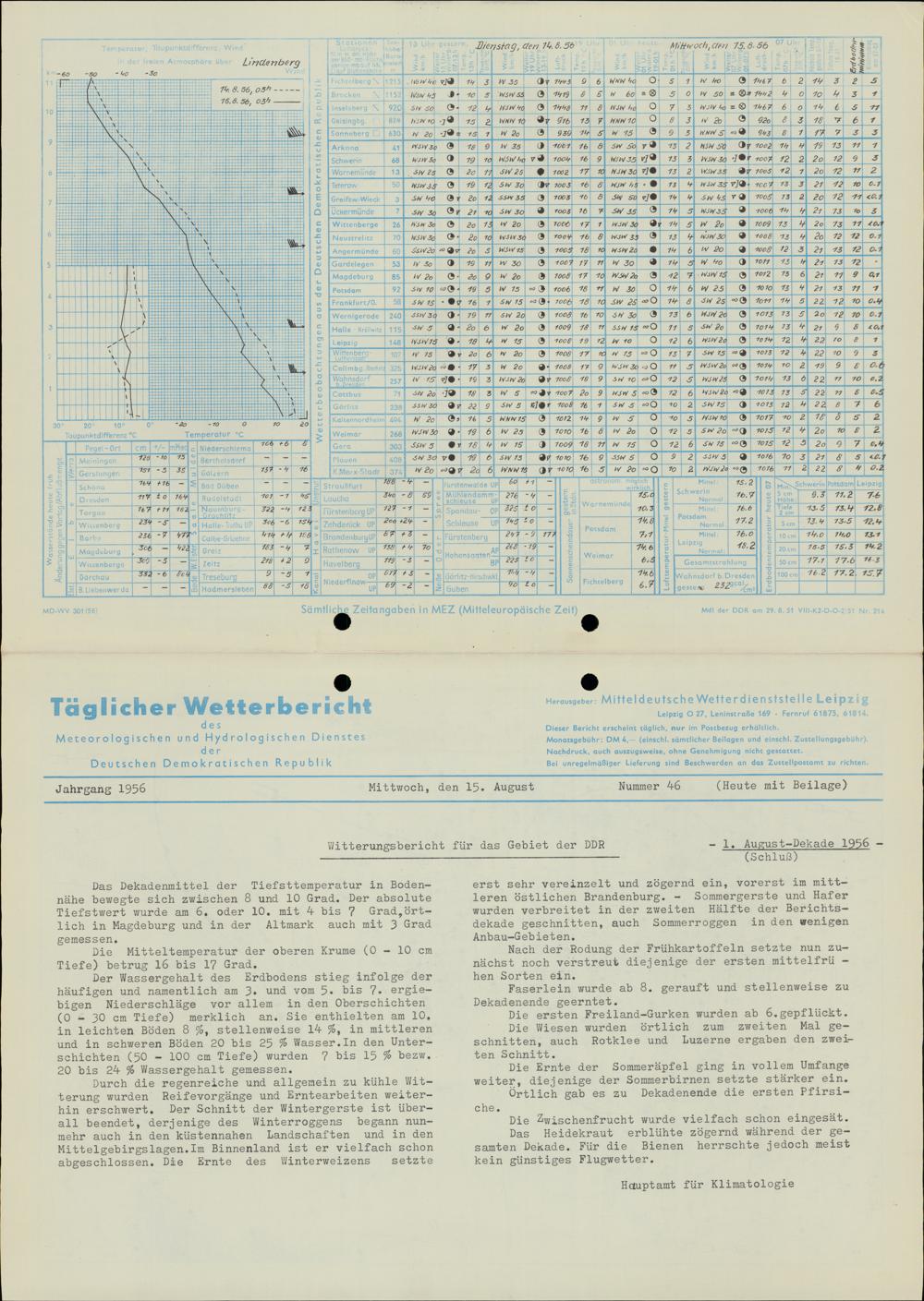 Täglicher Wetterbericht des Meteorologischen und Hydrologischen Dienstes der Deutschen...