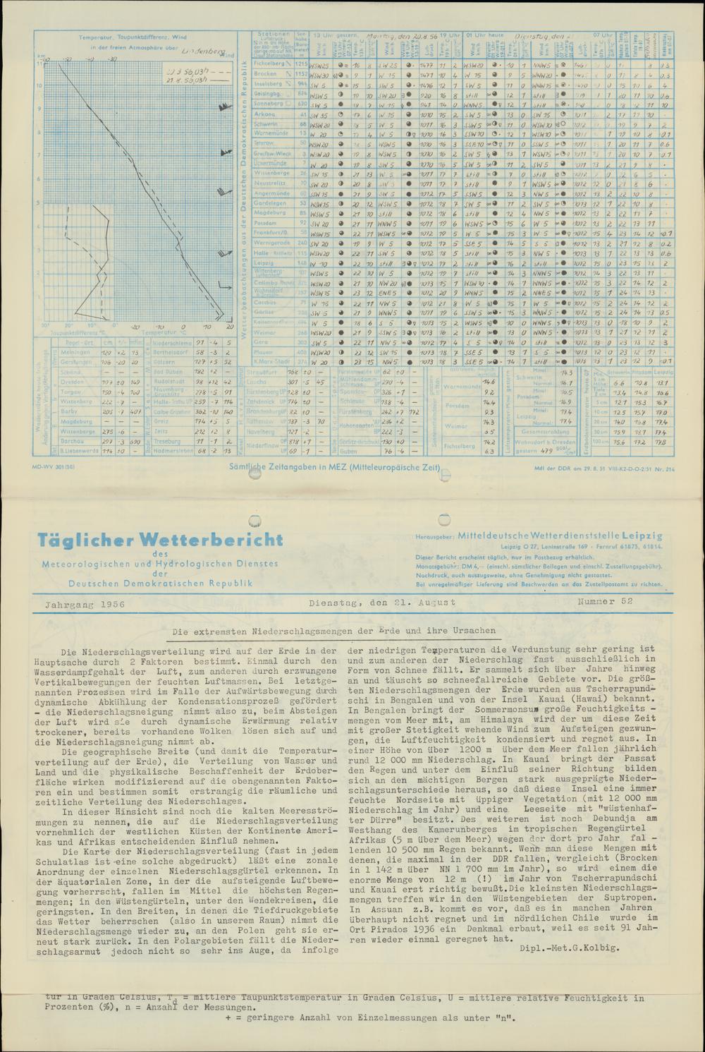 Täglicher Wetterbericht des Meteorologischen und Hydrologischen Dienstes der Deutschen...