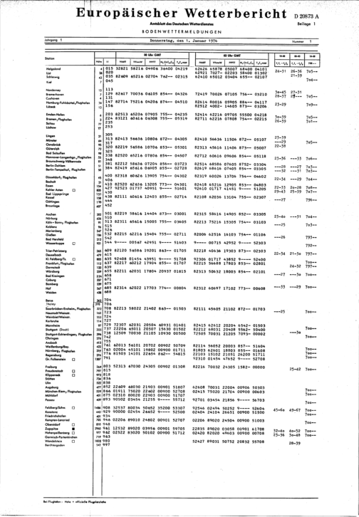 Europäischer Wetterbericht. Beilage 1, Bodenwettermeldungen. 1976-1994
