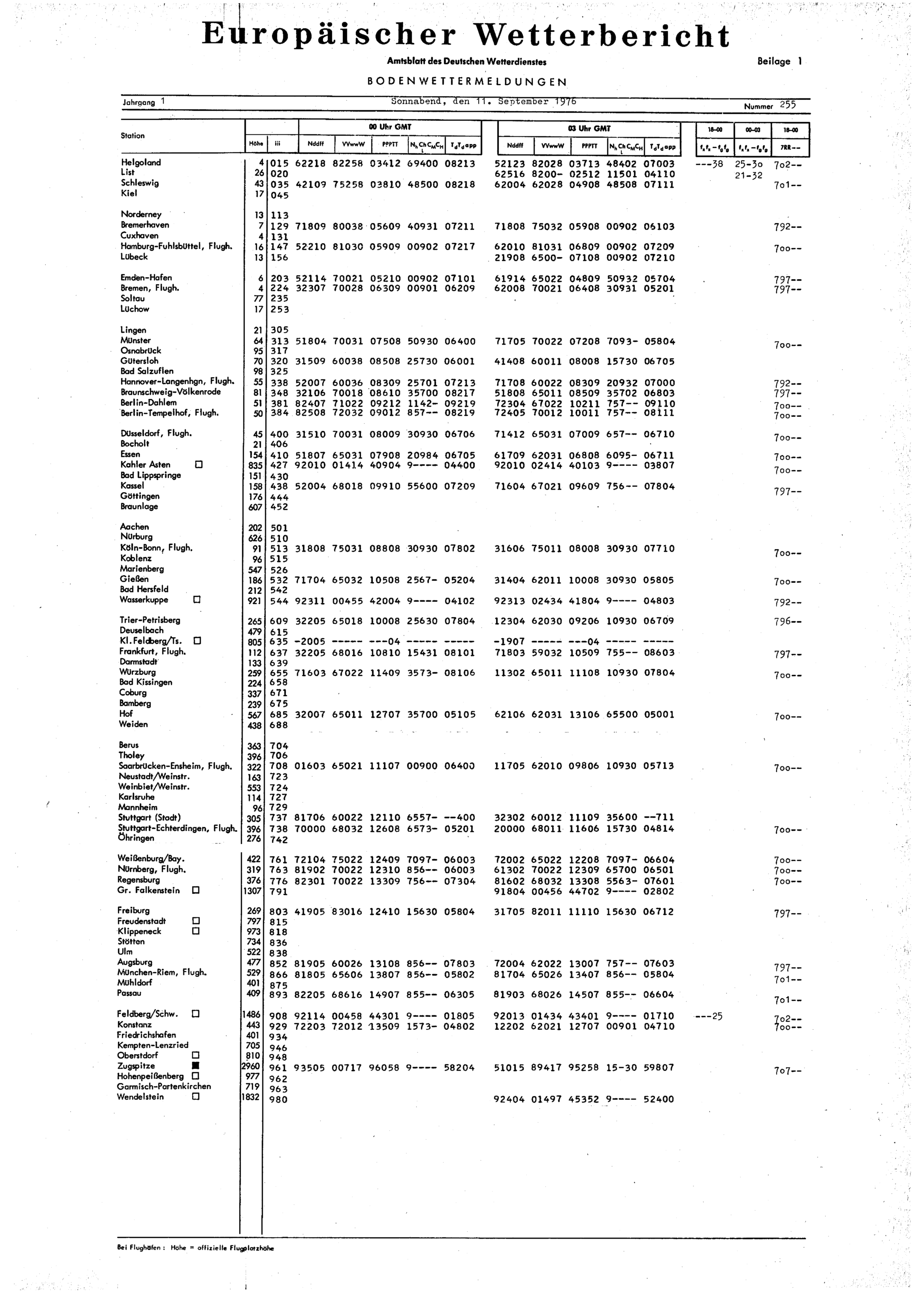 Europäischer Wetterbericht. Beilage 1, Bodenwettermeldungen. 1976-1994