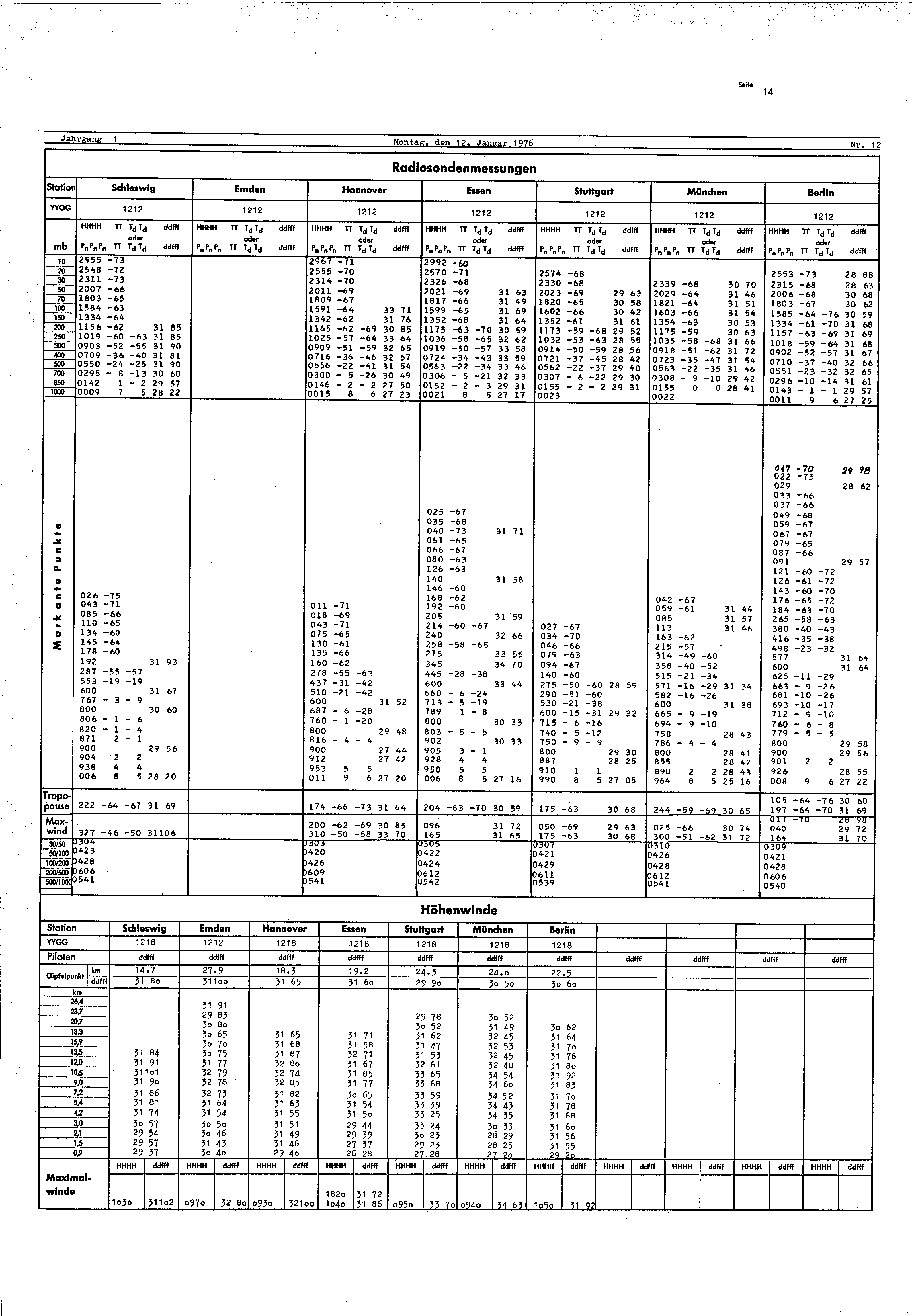 Europäischer Wetterbericht. Beilage 2, Aerologische Wettermeldungen. 1976-1994