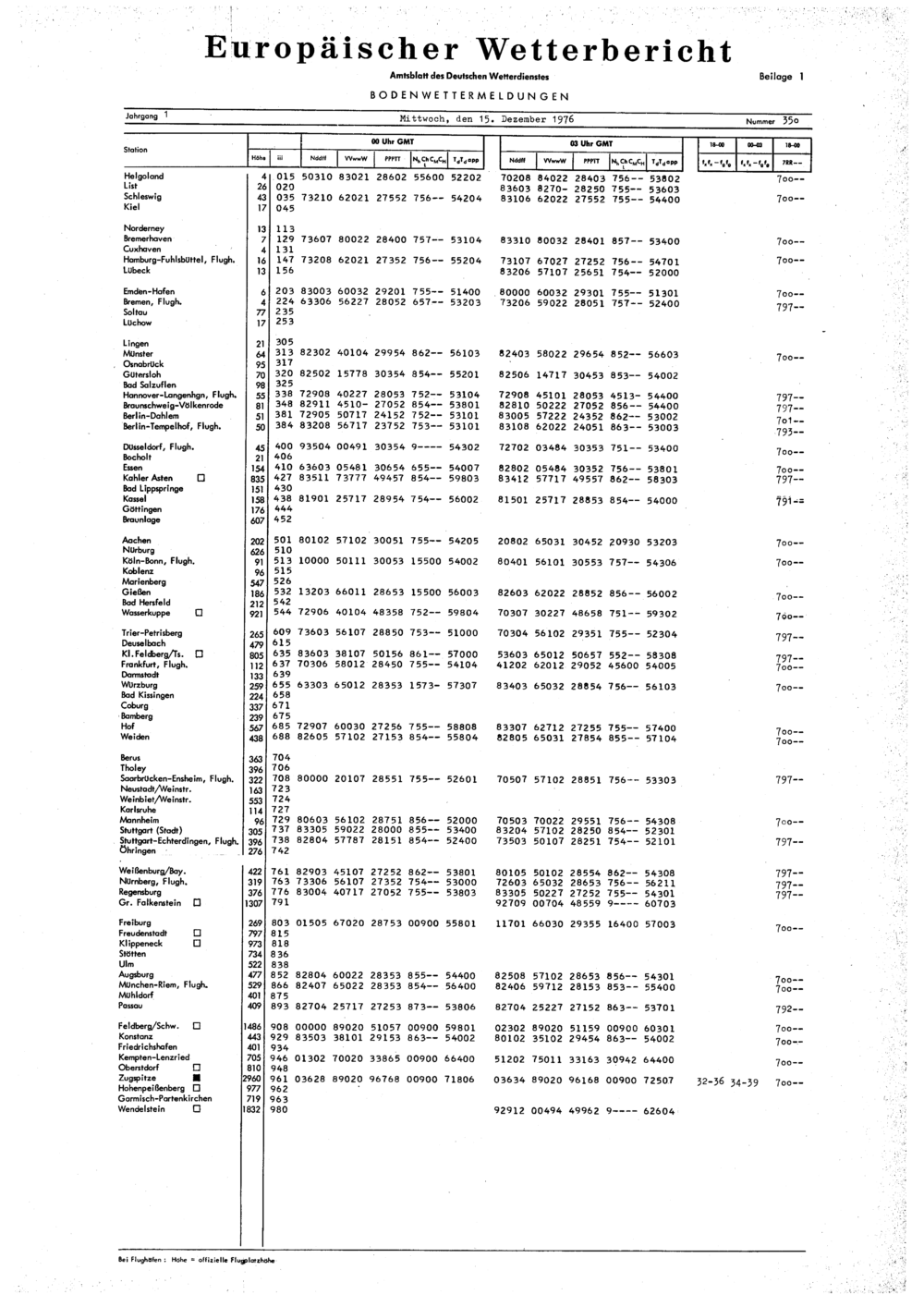 Europäischer Wetterbericht. Beilage 1, Bodenwettermeldungen. 1976-1994