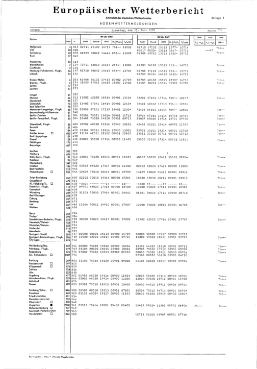 Europäischer Wetterbericht. Beilage 1, Bodenwettermeldungen. 1976-1994
