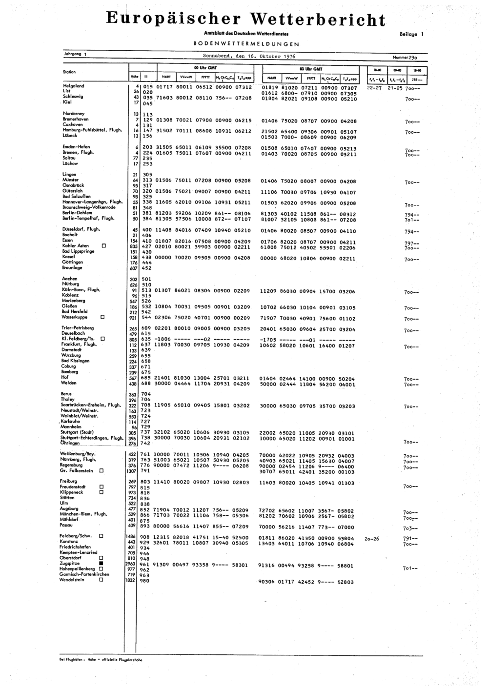 Europäischer Wetterbericht. Beilage 1, Bodenwettermeldungen. 1976-1994