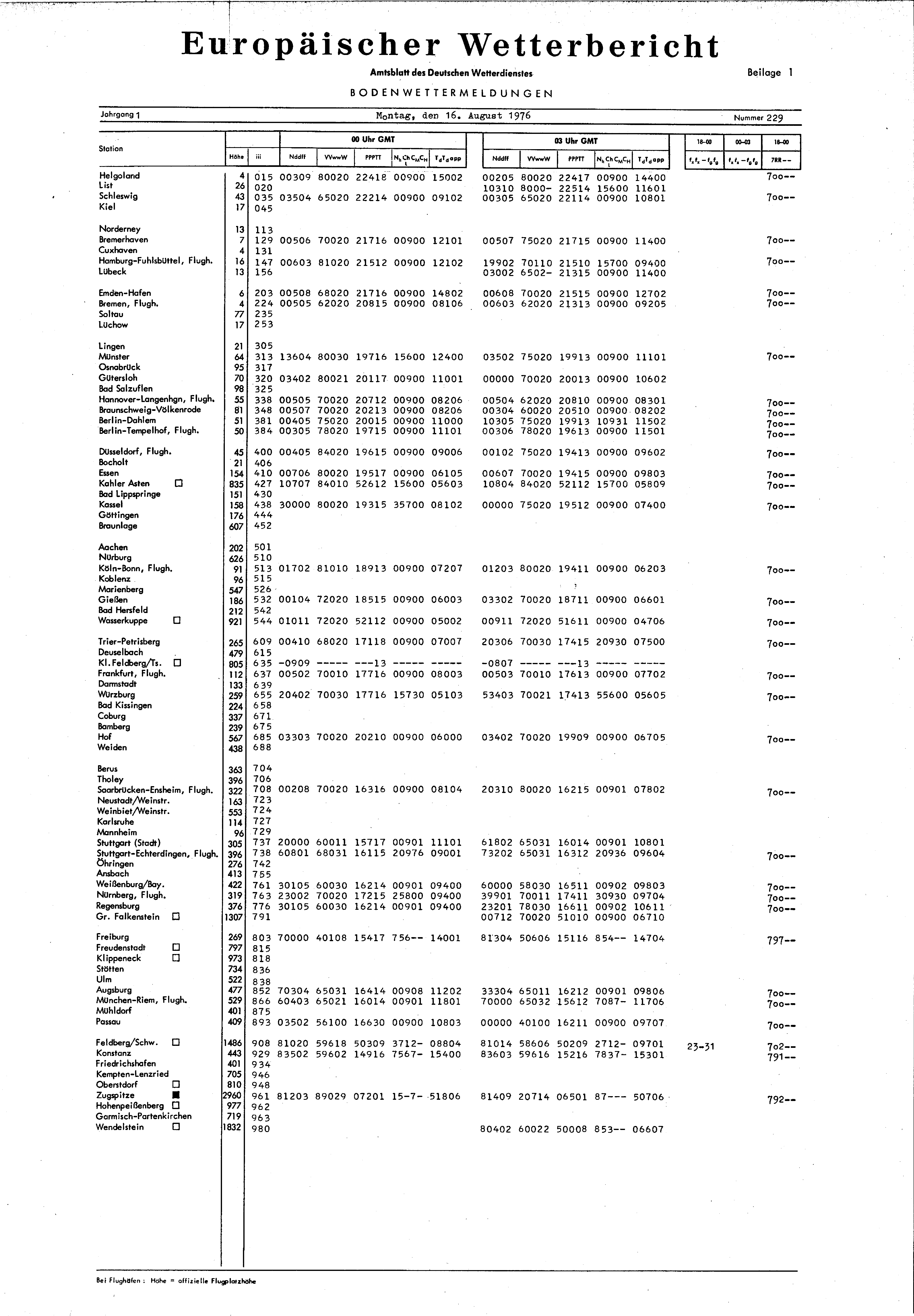 Europäischer Wetterbericht. Beilage 1, Bodenwettermeldungen. 1976-1994