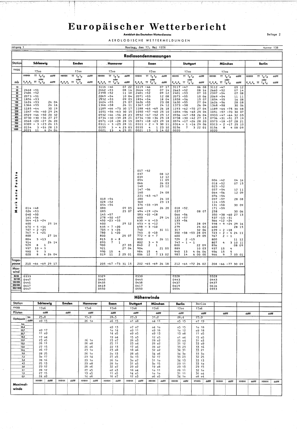 Europäischer Wetterbericht. Beilage 2, Aerologische Wettermeldungen. 1976-1994