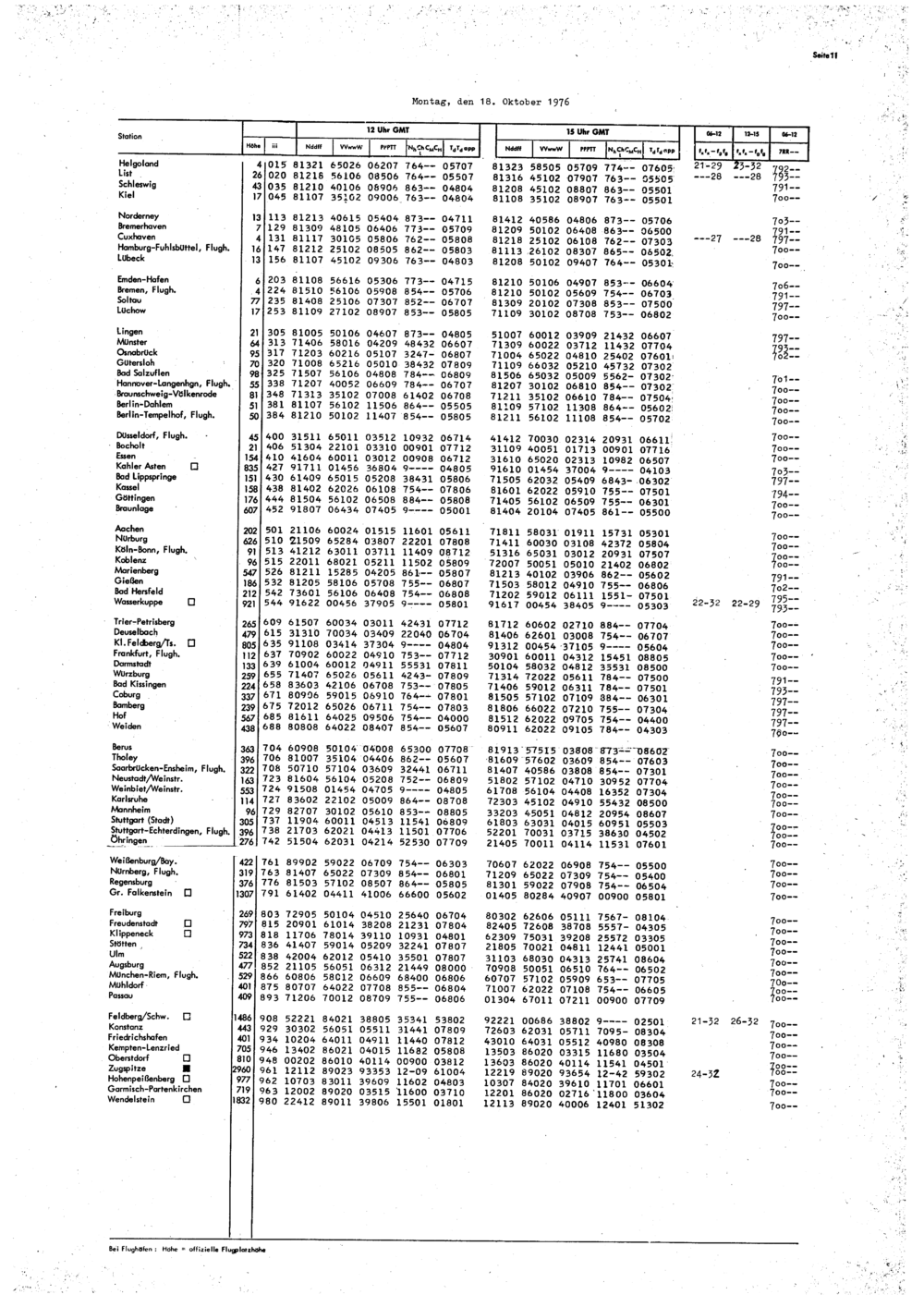 Europäischer Wetterbericht. Beilage 1, Bodenwettermeldungen. 1976-1994