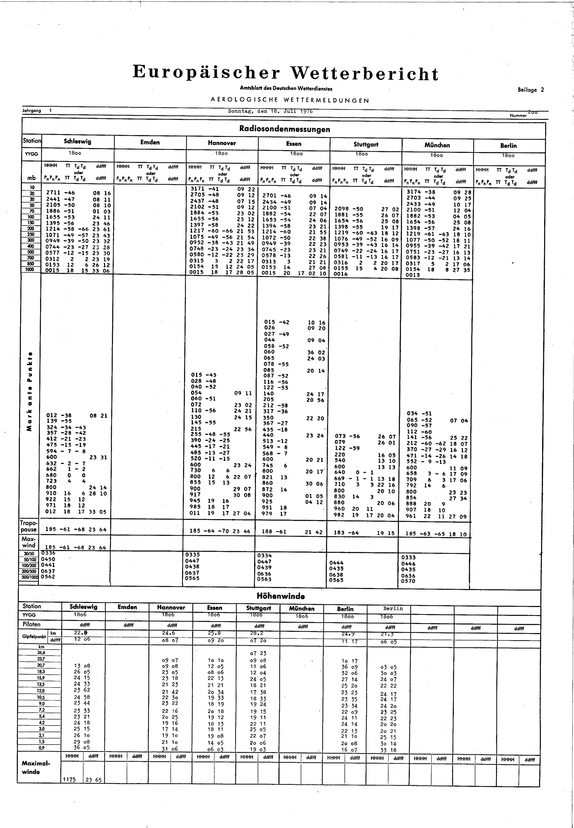 Europäischer Wetterbericht. Beilage 2, Aerologische Wettermeldungen. 1976-1994