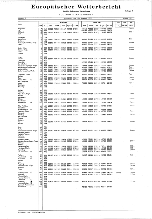 Europäischer Wetterbericht. Beilage 1, Bodenwettermeldungen. 1976-1994