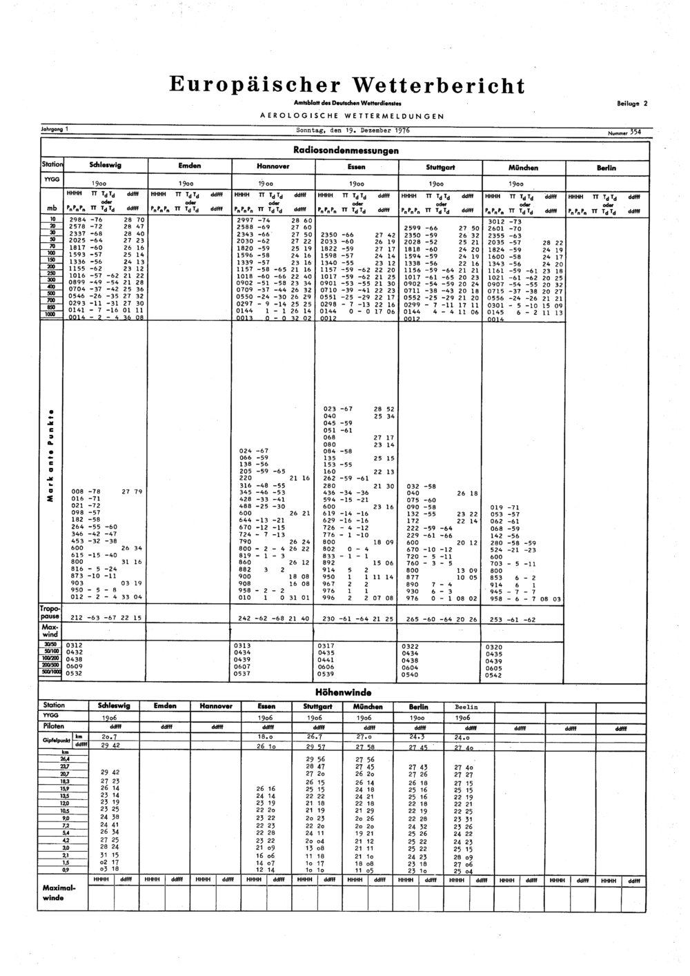Europäischer Wetterbericht. Beilage 1, Bodenwettermeldungen. 1976-1994