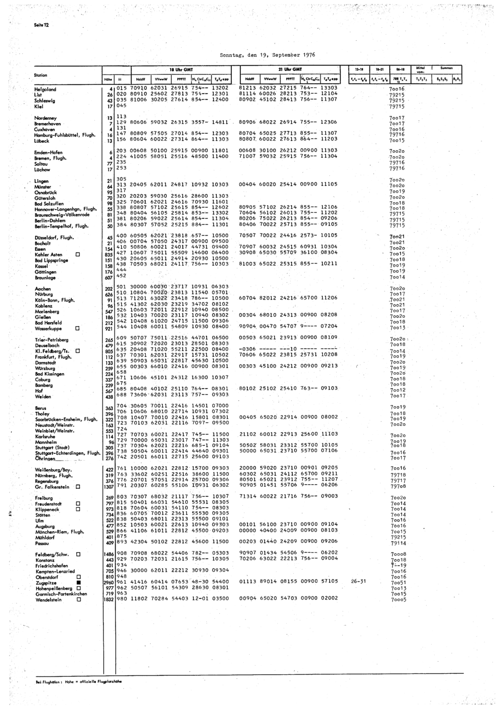 Europäischer Wetterbericht. Beilage 1, Bodenwettermeldungen. 1976-1994