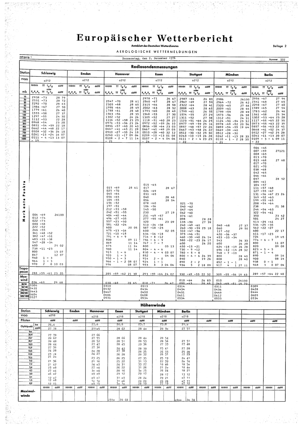 Europäischer Wetterbericht. Beilage 1, Bodenwettermeldungen. 1976-1994