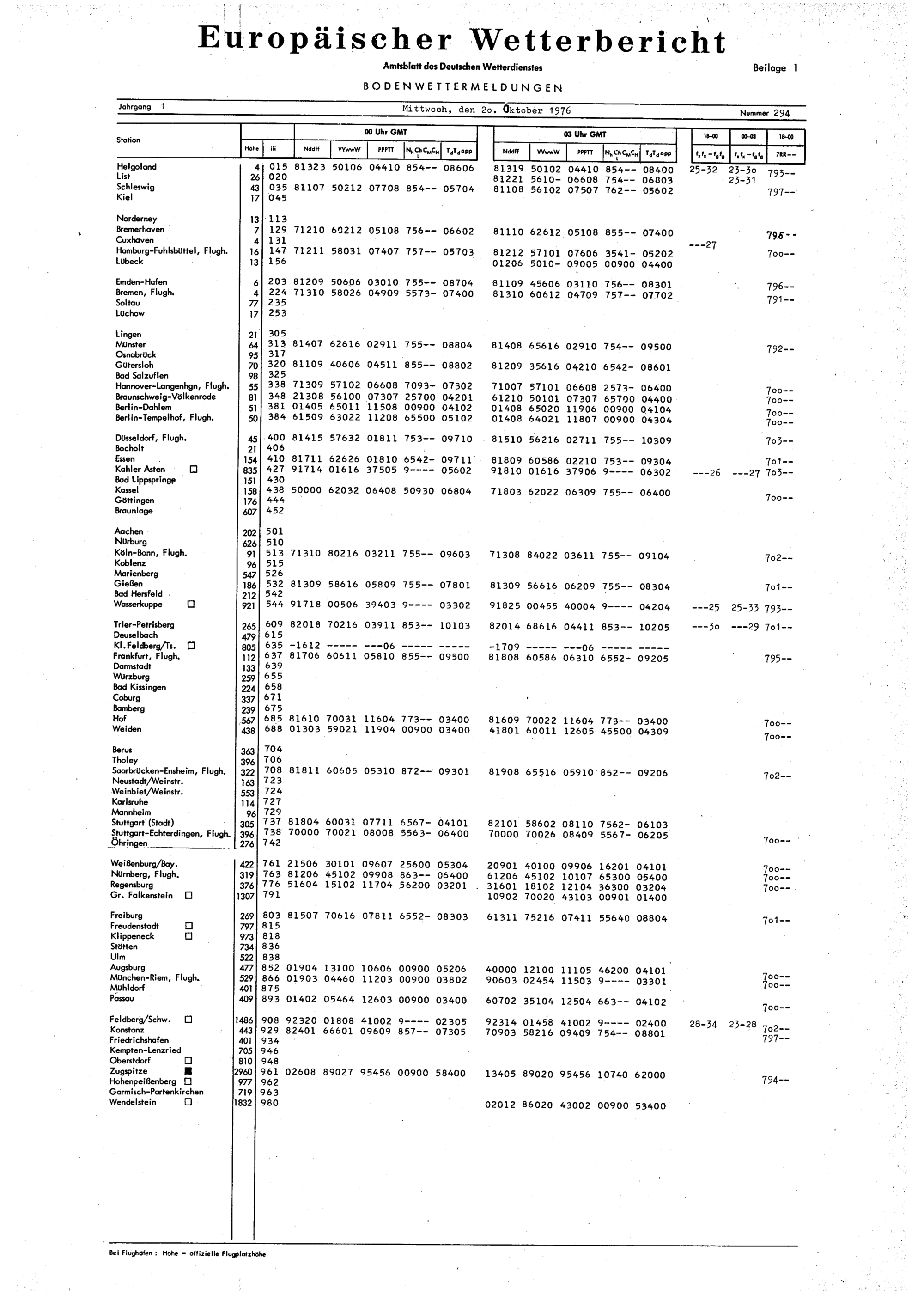 Europäischer Wetterbericht. Beilage 1, Bodenwettermeldungen. 1976-1994