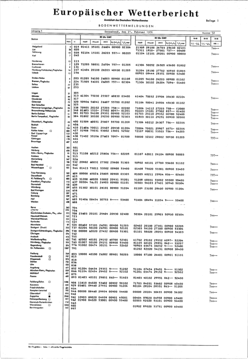 Europäischer Wetterbericht. Beilage 1, Bodenwettermeldungen. 1976-1994