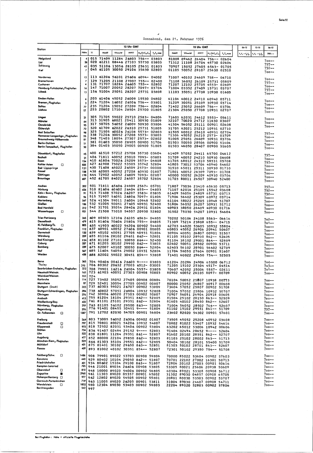 Europäischer Wetterbericht. Beilage 1, Bodenwettermeldungen. 1976-1994