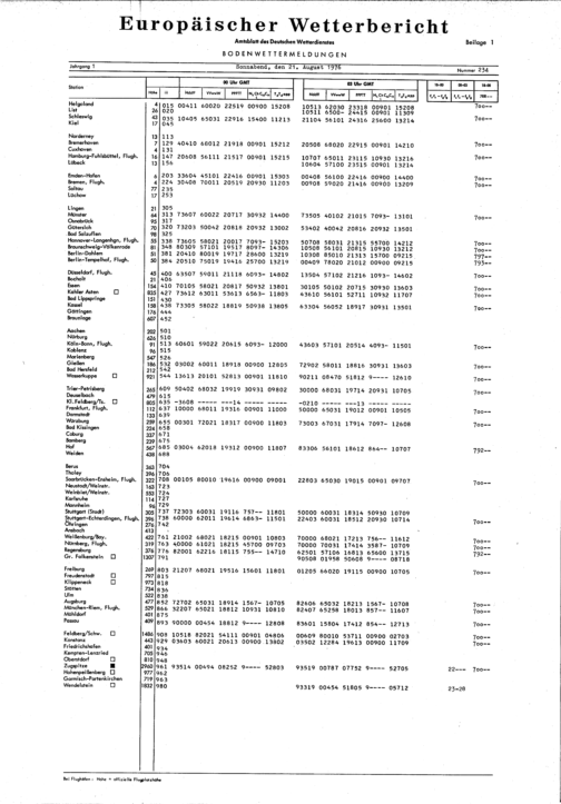Europäischer Wetterbericht. Beilage 1, Bodenwettermeldungen. 1976-1994
